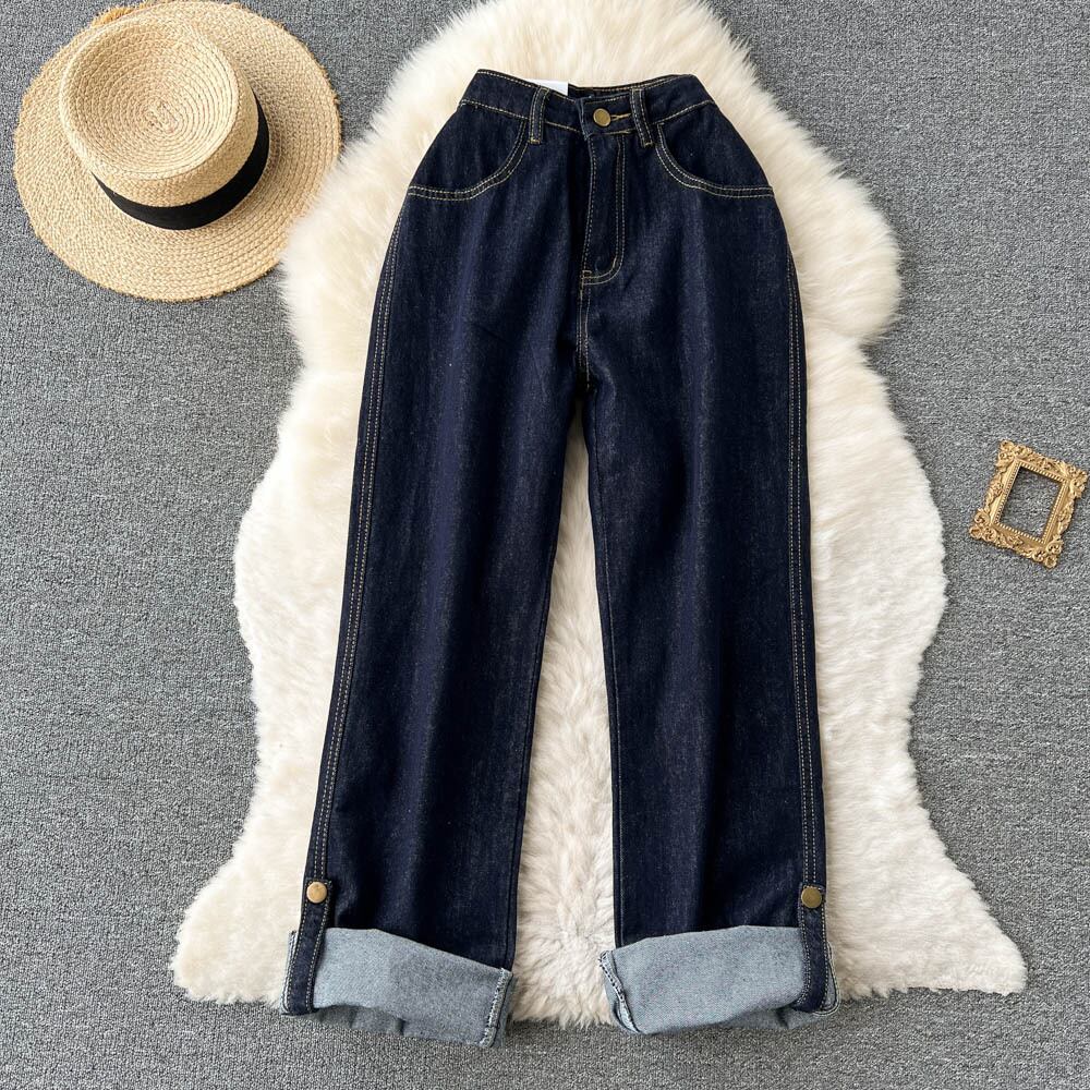 ニッチデザインセンスカーリングルーズストレートジーンズレディース夏薄手ハイウエストワイドレッグパンツインハイストリートタイド ハイウェスト サマー 夏物 ワイドパンツ lyxaj537063946