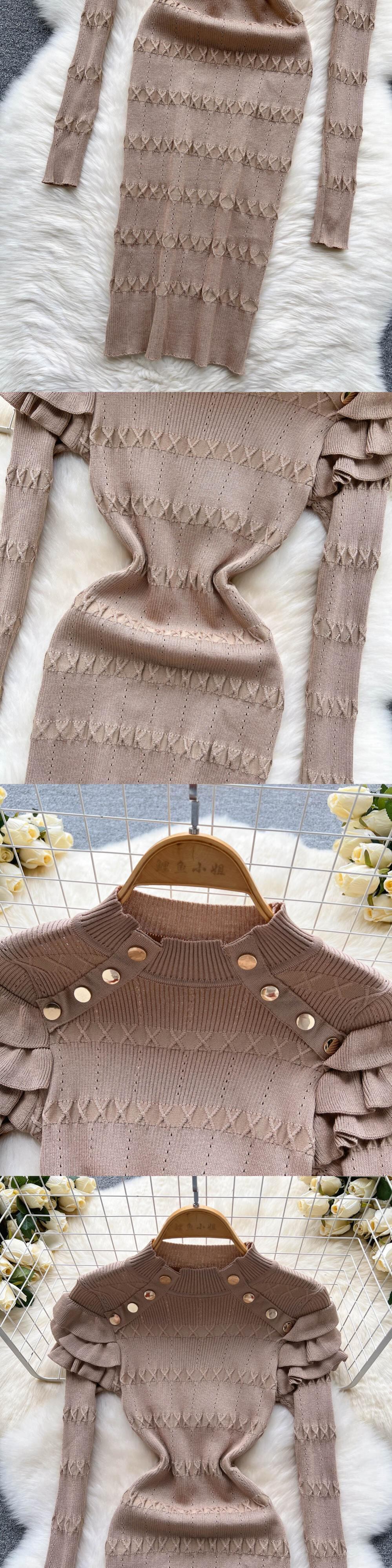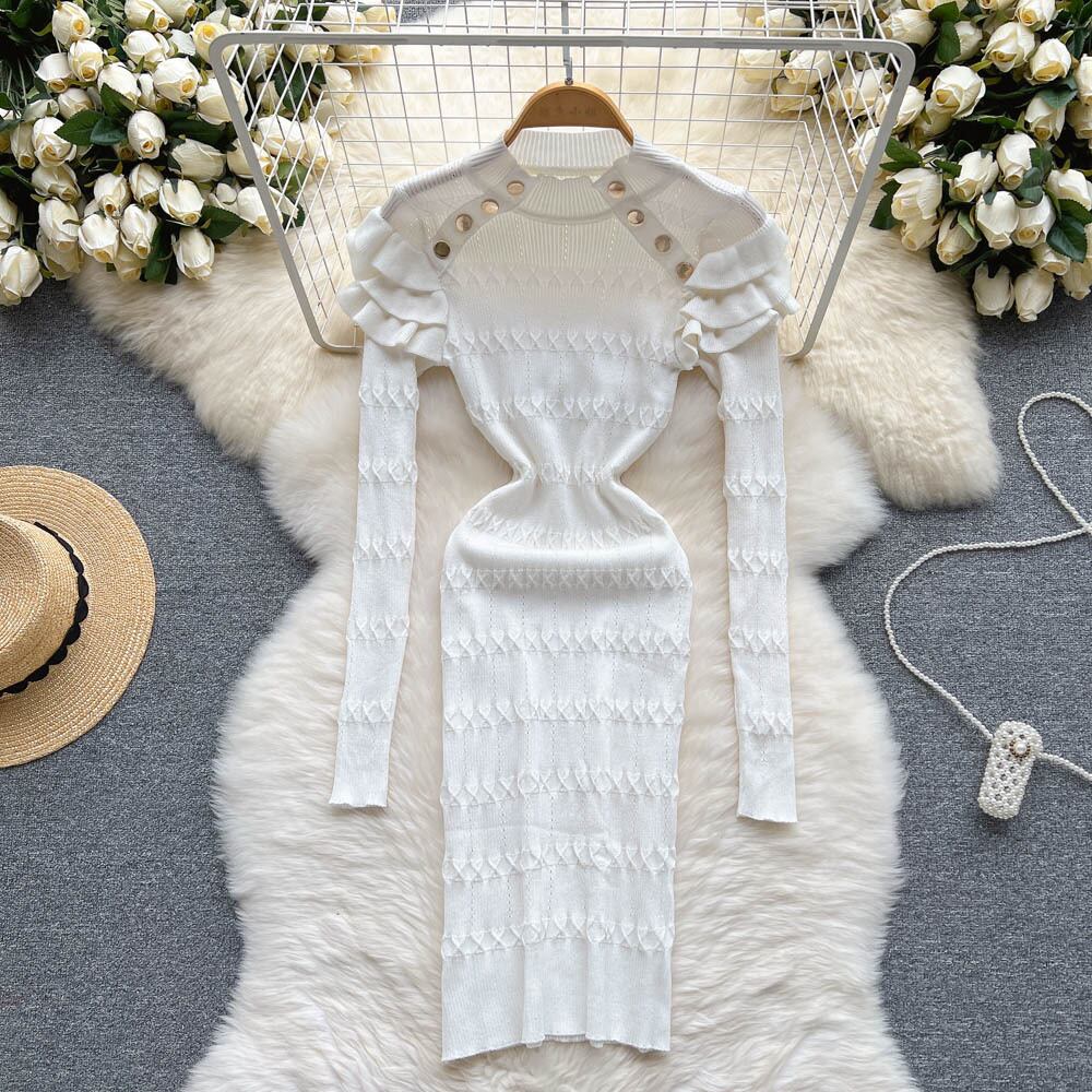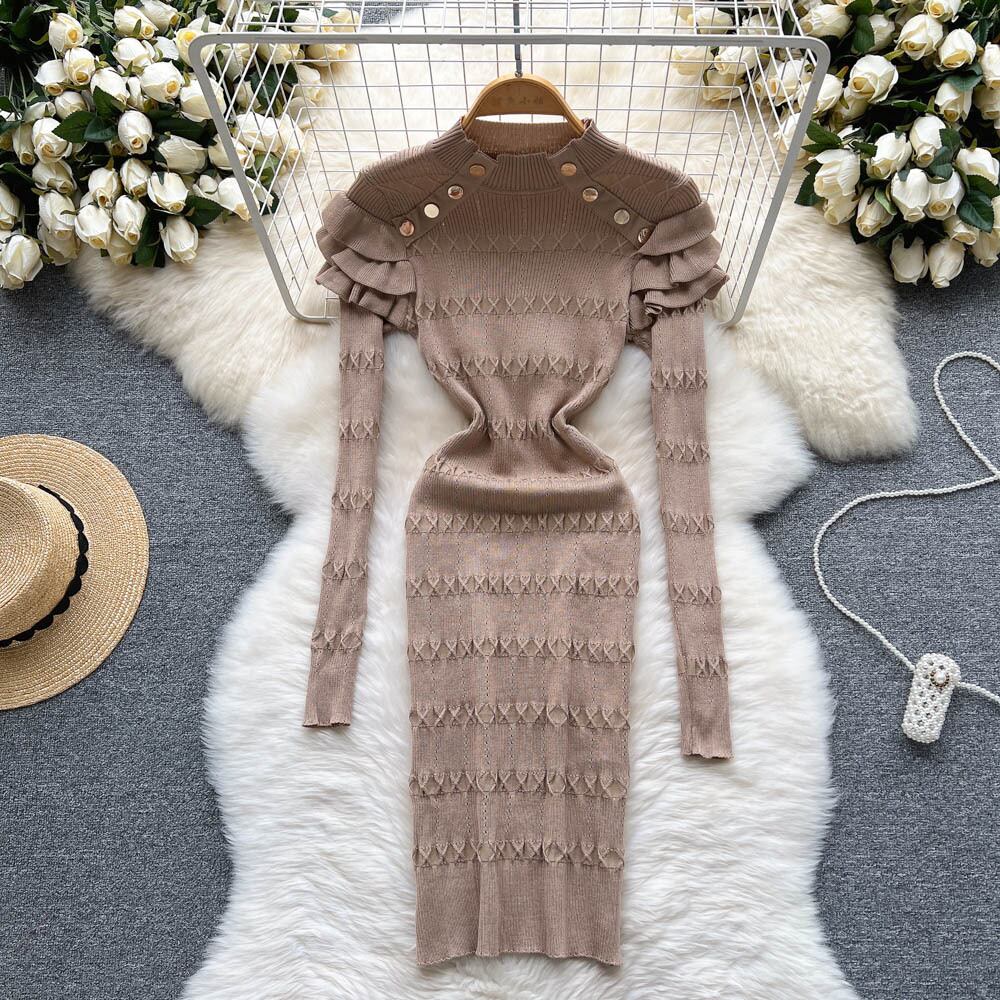 ハイエンドの寒風グリーン フリル長袖ドレス夏の女性のシックで見事なウエスト バッグ ヒップ スカート ロング サマー 夏物 lyxaj33041923988