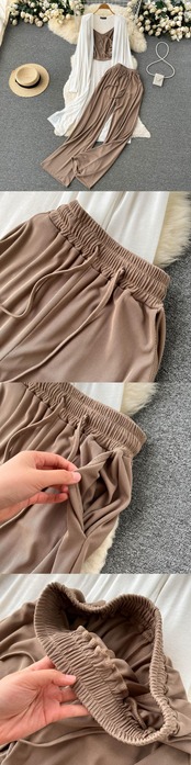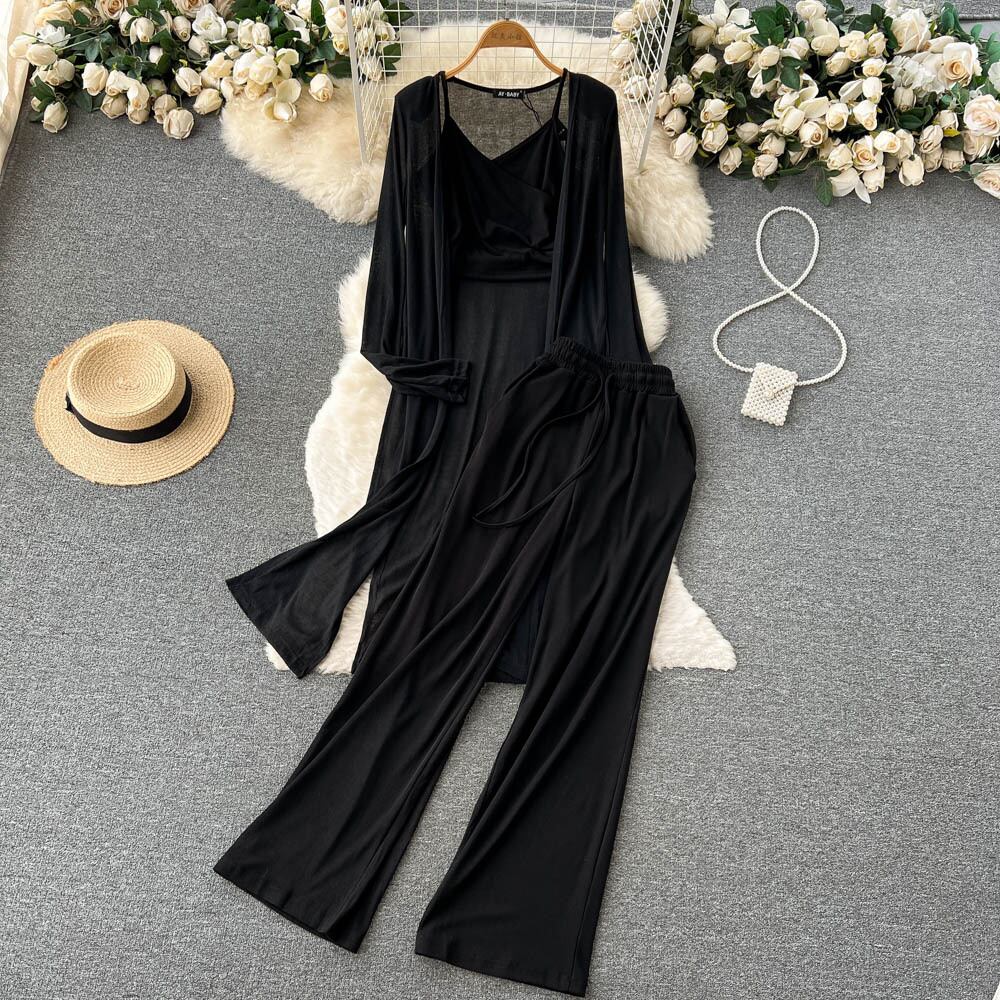 able and fashionable three-piece suit women's autumn long-sleeved sunscreen cardigan coat small suspenders high waist casual pants ハイウェスト ロング カジュアル カーディガン オータム 秋物 lyxaj78178759474