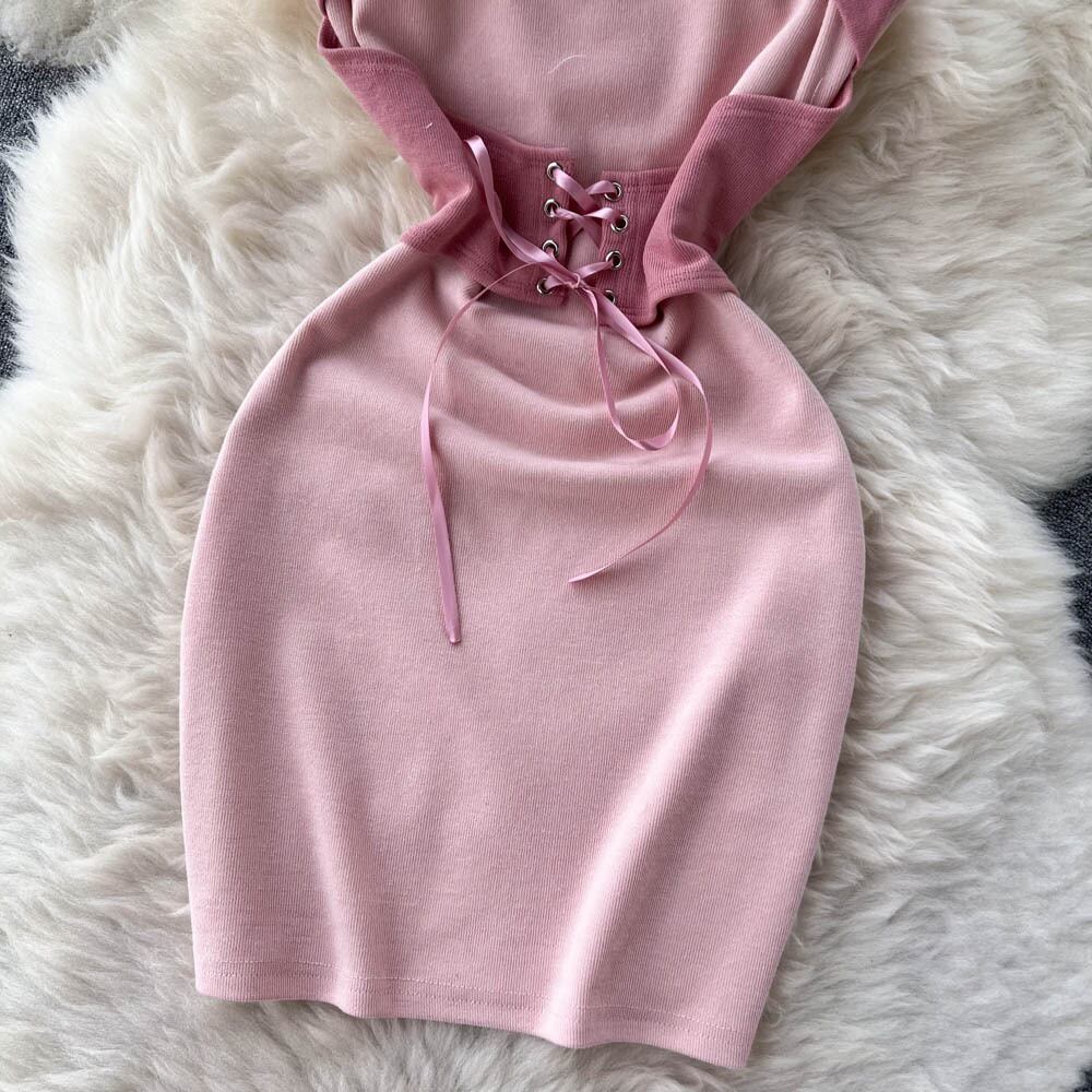 純粋な欲望ホットガールコントラストカラースリングドレス夏の女性の梨型のボディタイウエスト細いスカート サマー 夏物 lyxaj57668202281