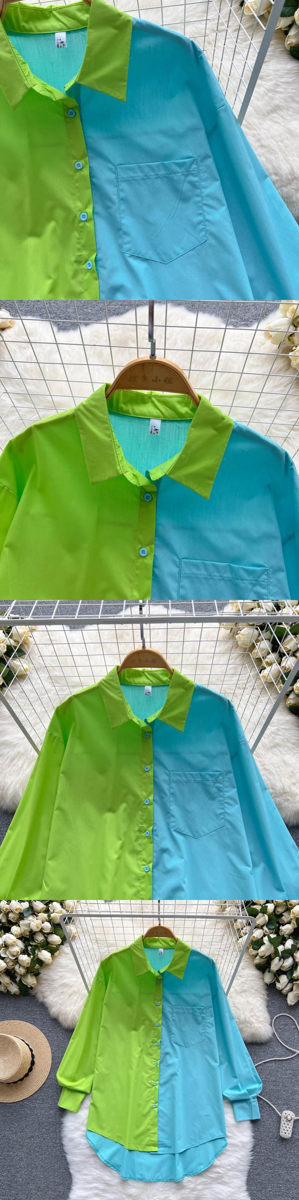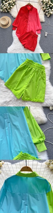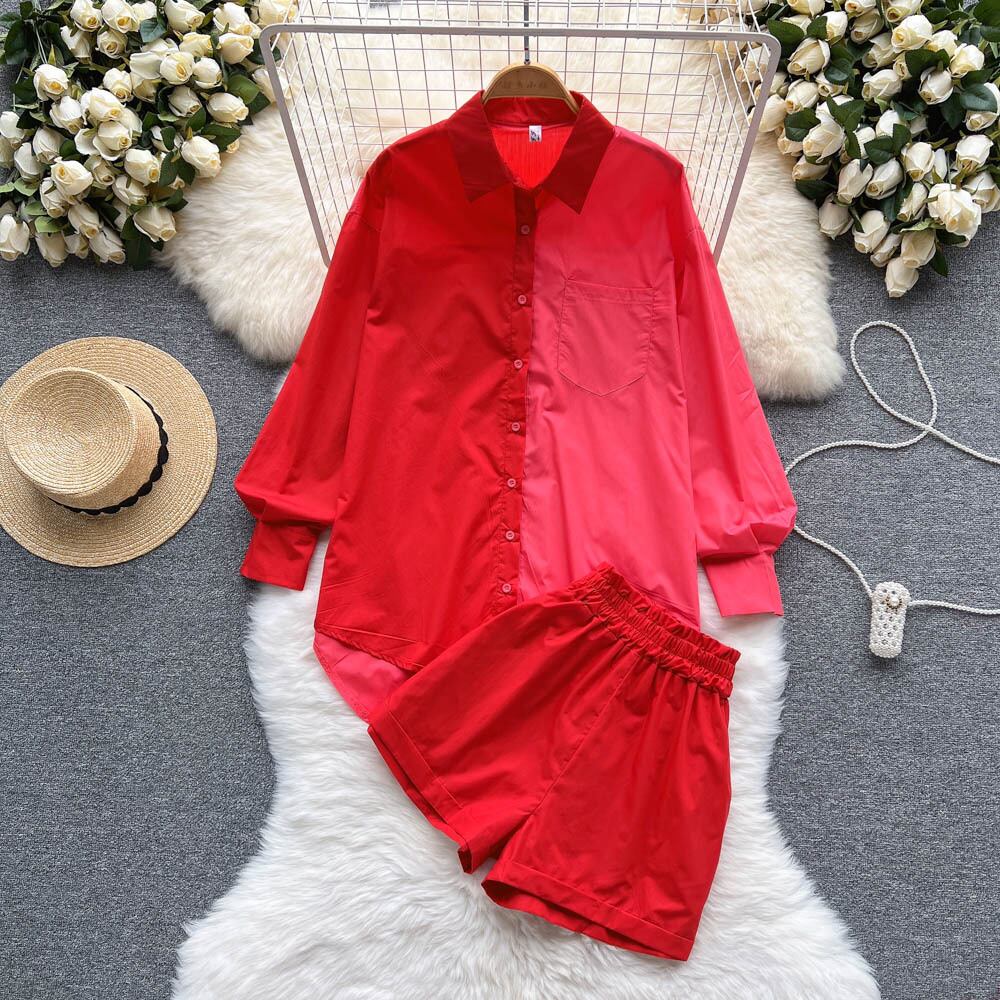カジュアルスーツ女性2022年新作イレギュラーカラーマッチングデザインゆったり長袖シャツワイドレッグショーツ2点セット ロング ブルマー lyxaj15920162744