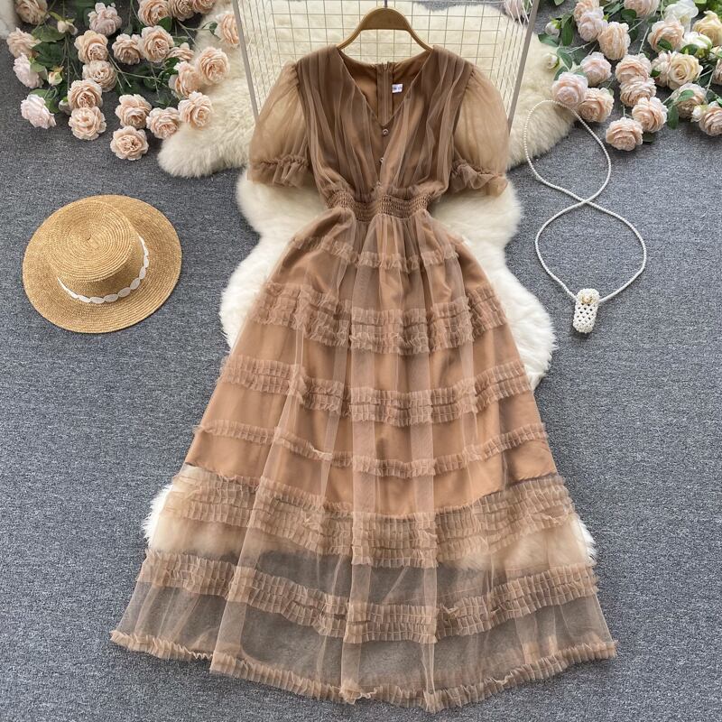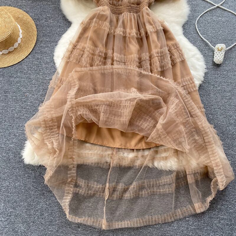 ドレススリング 妖精 スーパーフェアリー セン 初恋ガール 気持ちいい 甘い気質 ハイウエスト フレンチメッシュ 大きく揺れるロングスカート 大人ガーリー スウィート キュート カジュアル lyxaj89908929440