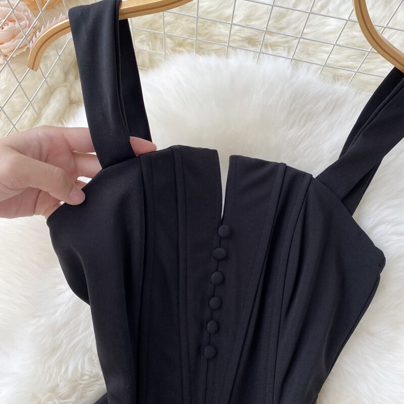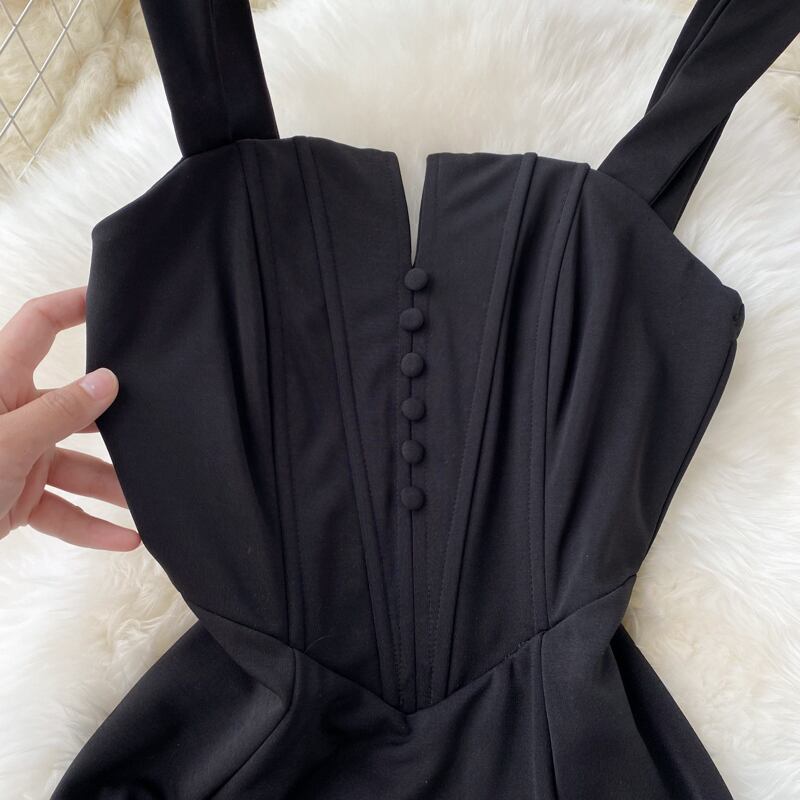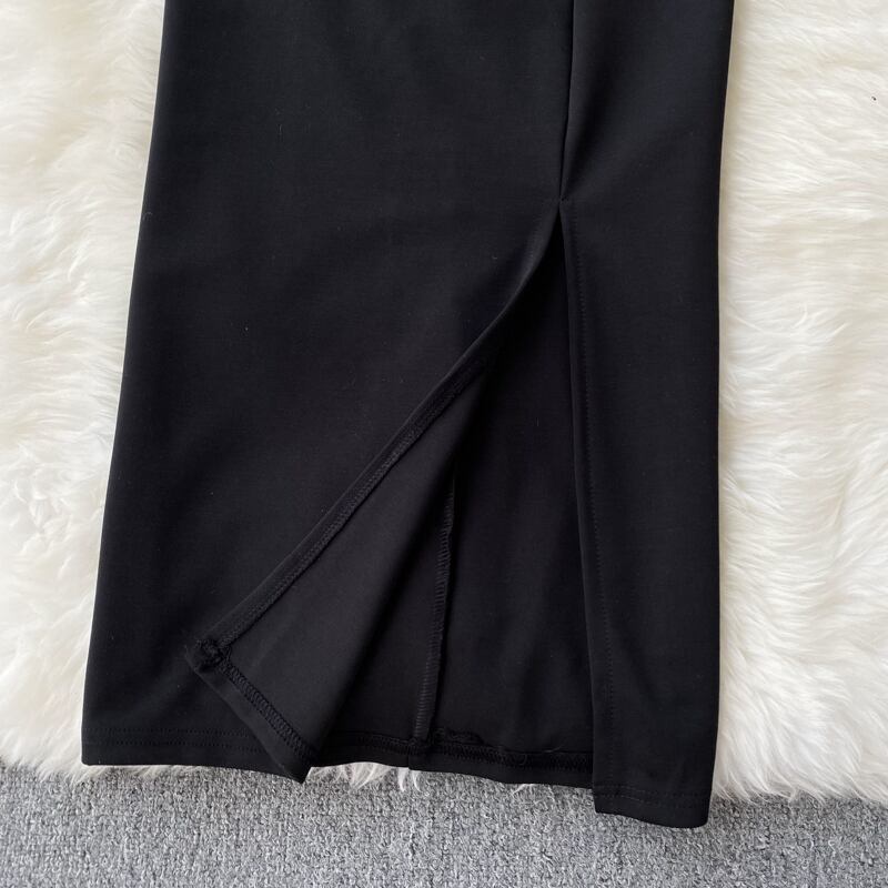 レトロヘップバーンスタイルリトルブラックドレス 2022 新気質自己修養ミッドレングス痩身スリットバッグヒップサスペンダードレス lyxaj91942693874
