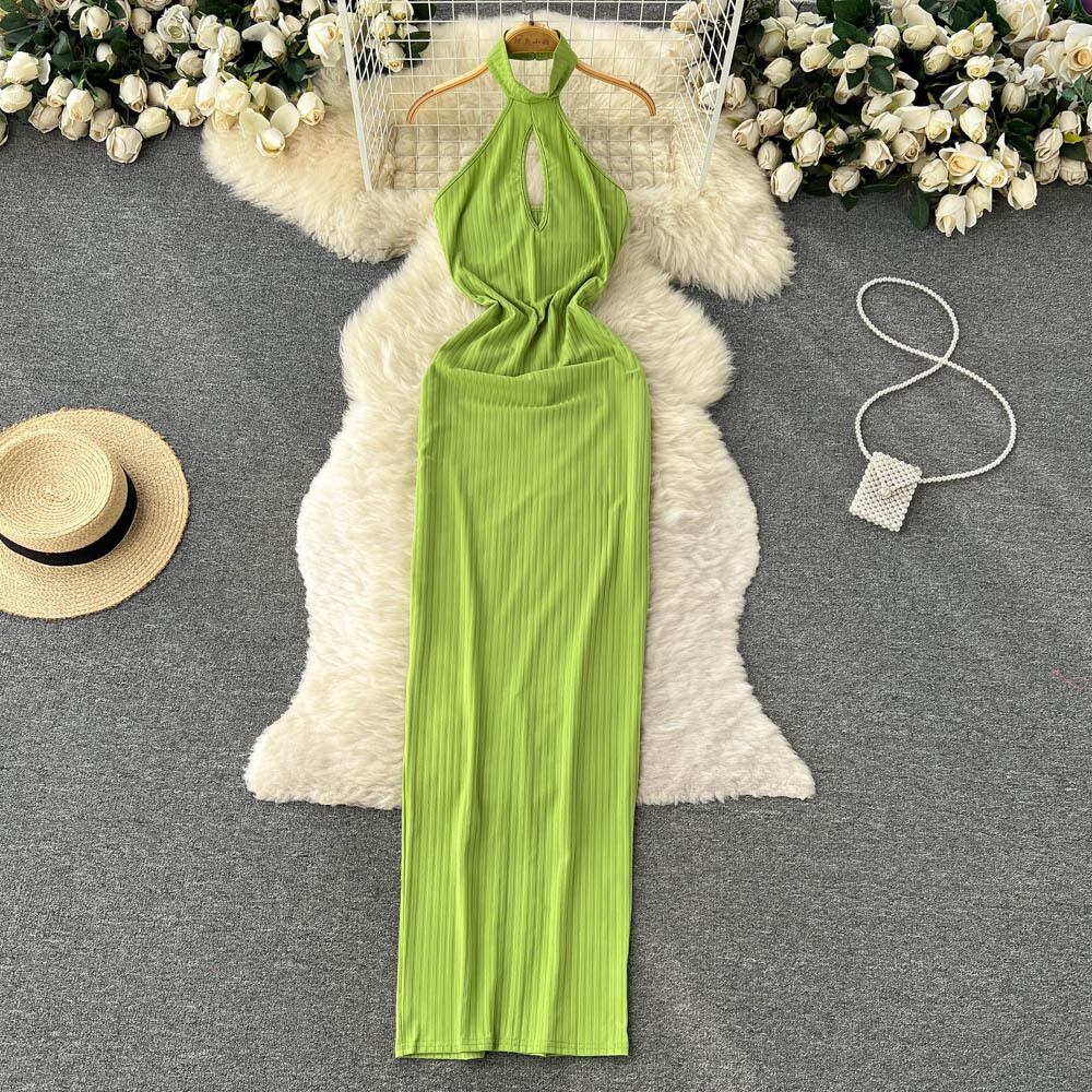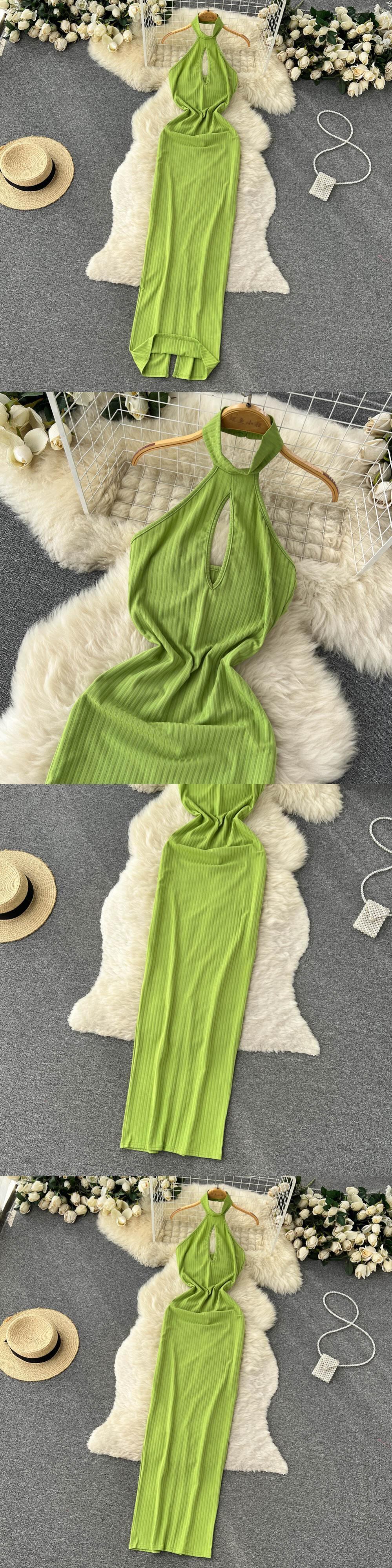 ヨーロッパとアメリカのスタイルウエスト痩身ホルターネック中空ドレス夏の女性のシックな見事なニットスリムヒップスカート サマー 夏物 ヨーロピアン lyxaj62836266016