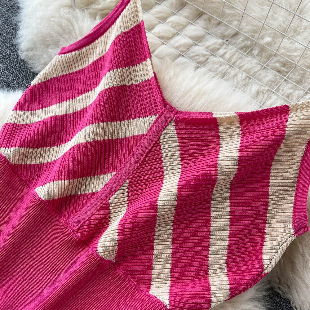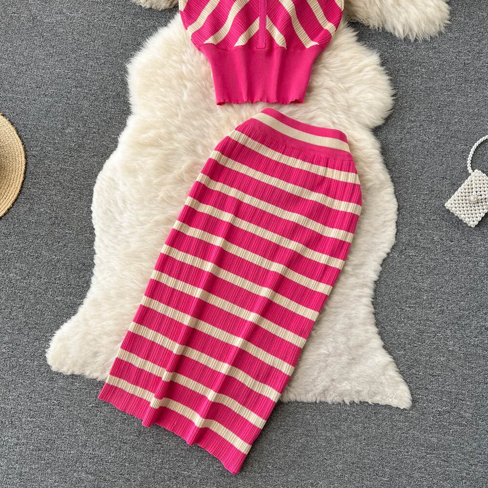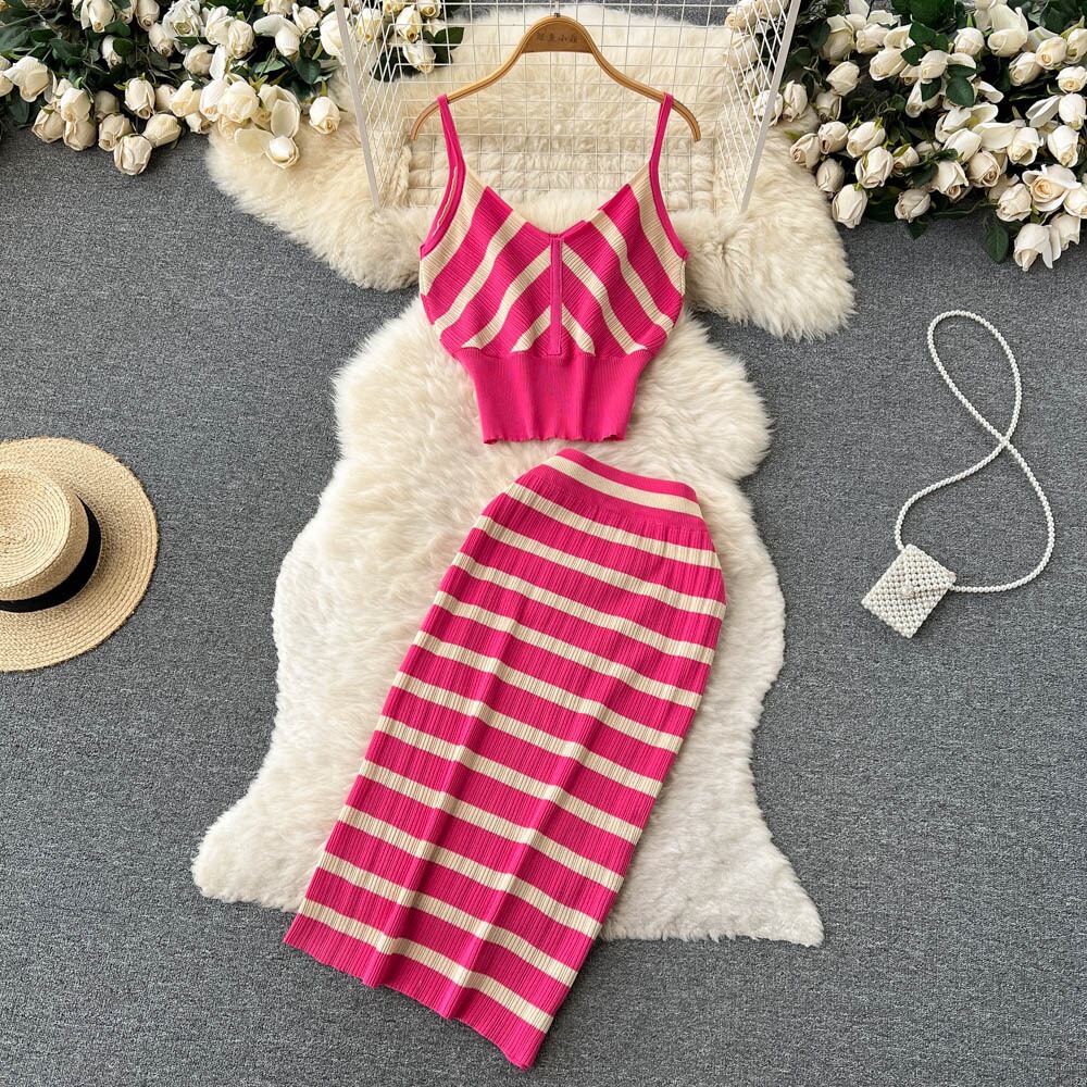 This year's popular beautiful two-piece suit female summer striped camisole high waist knitted hip skirt ハイウェスト サマー 夏物 スカート ストライプ lyxaj93063252263