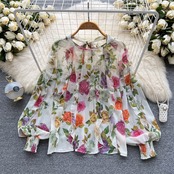 Chiffon shirt loose and thin ruffled temperament long-sleeved shirt top summer women's high-end chic and beautiful small shirt tide ロング シフォン サマー 夏物 lyxaj60481454228