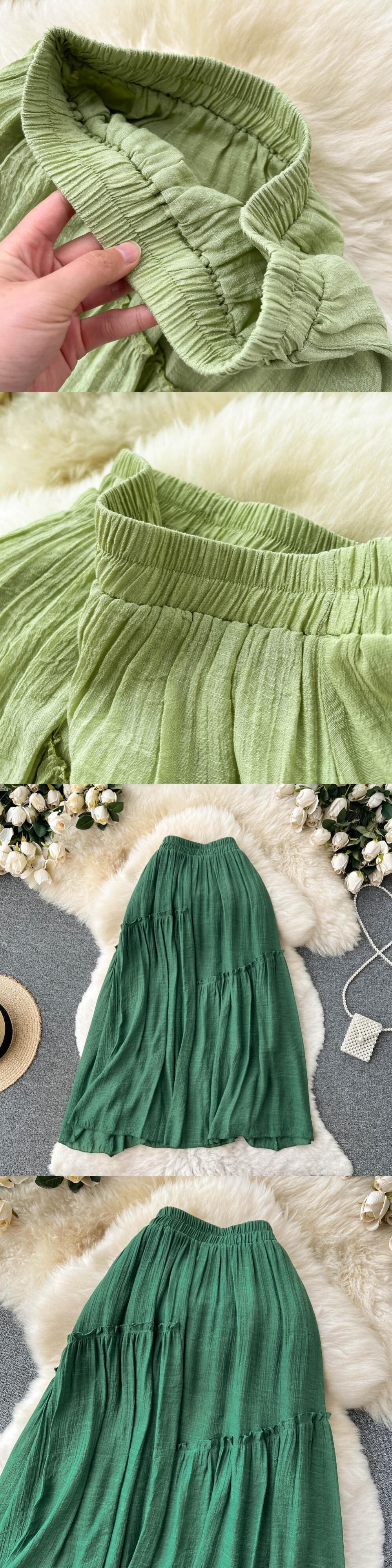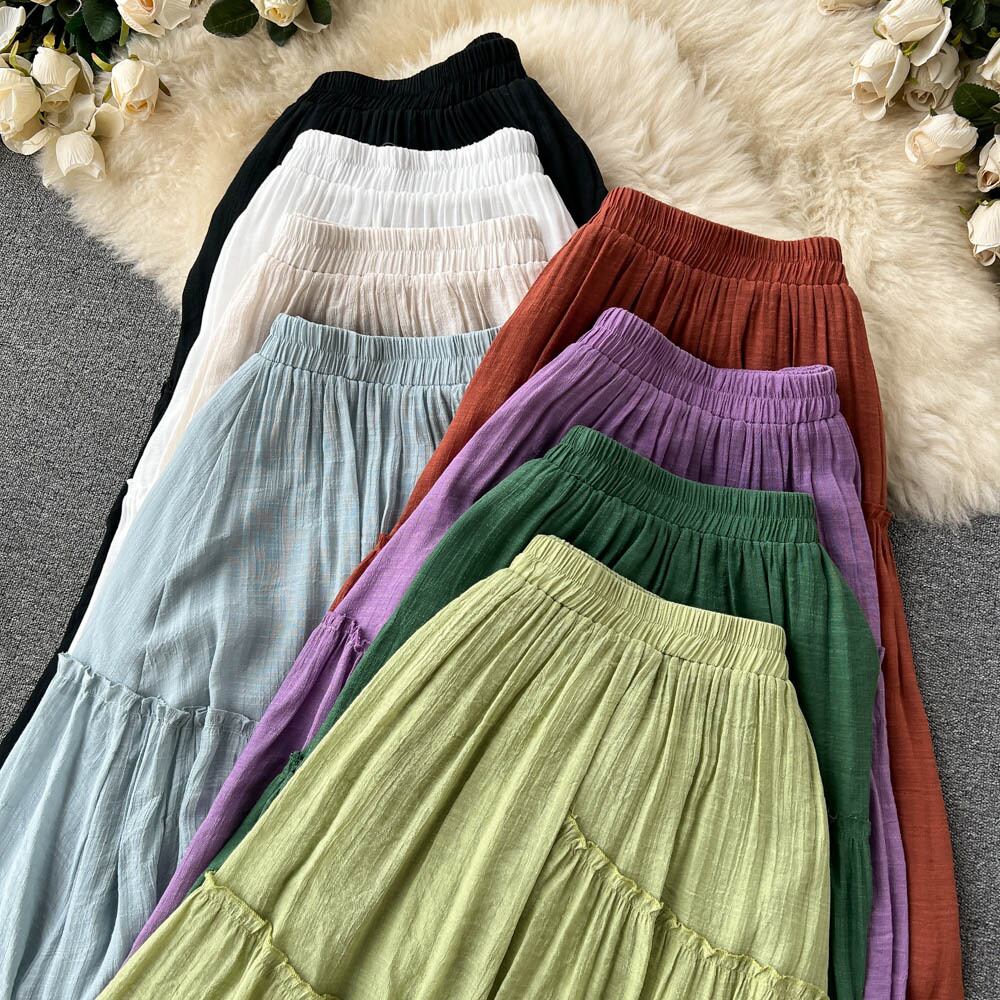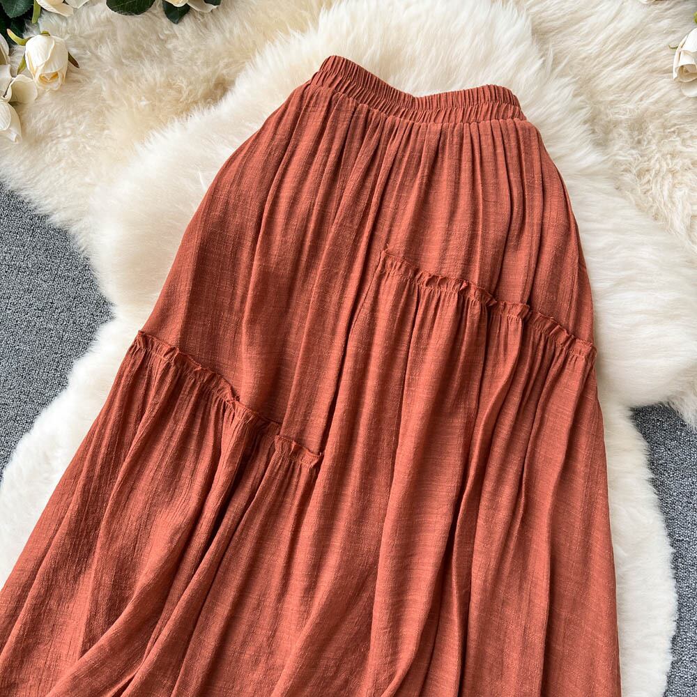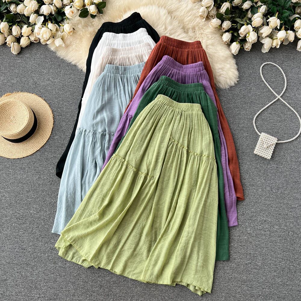 2022 夏新ハイウエストドレープ a ラインスカートファッション弾性オールマッチプリーツ大スイング気質ミディスカート ハイウェスト エラスティック 伸縮 サマー 夏物 Aライン lyxaj82353800841