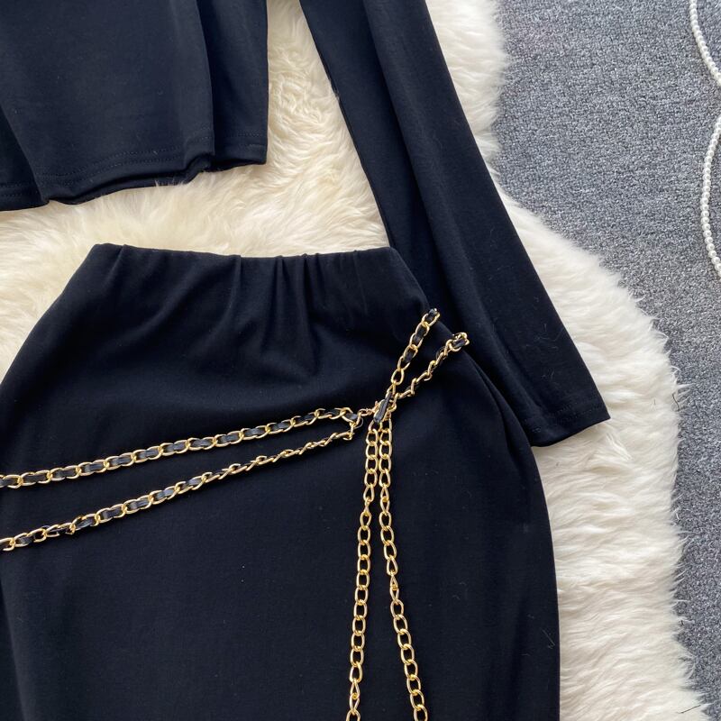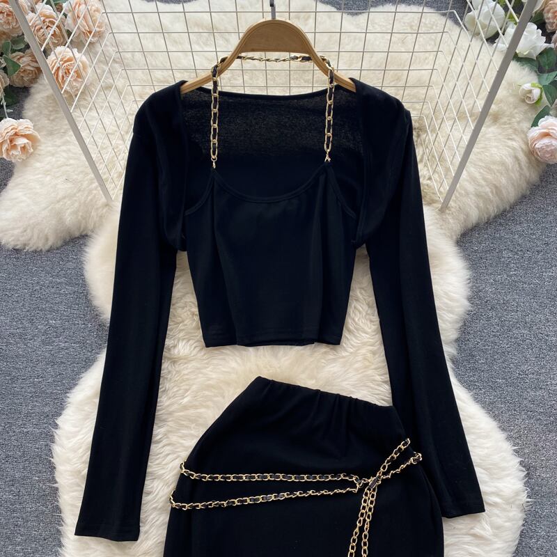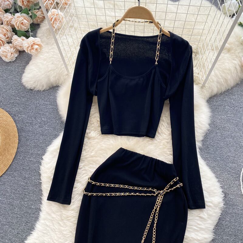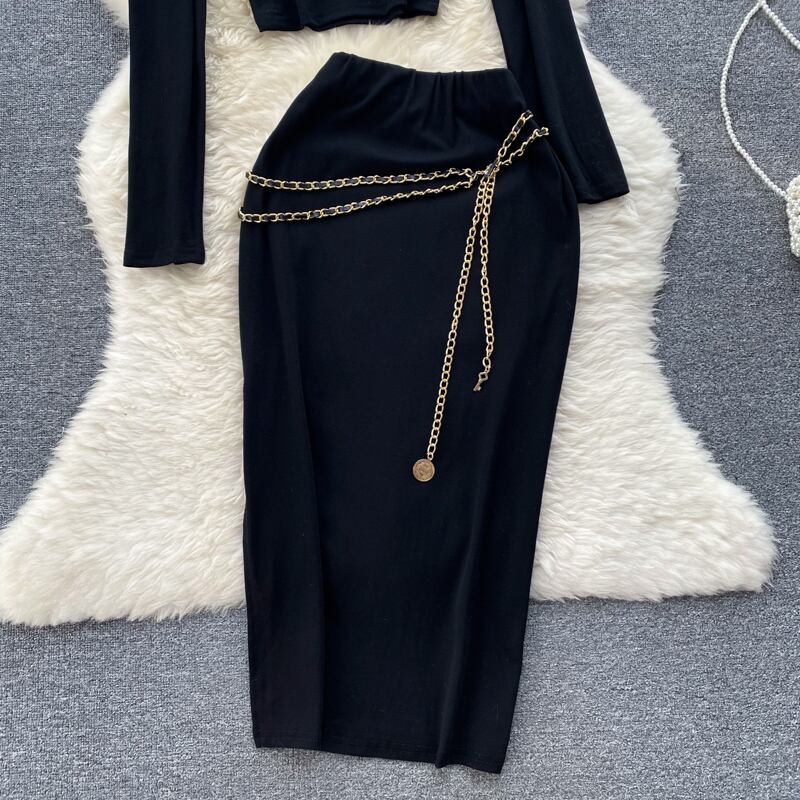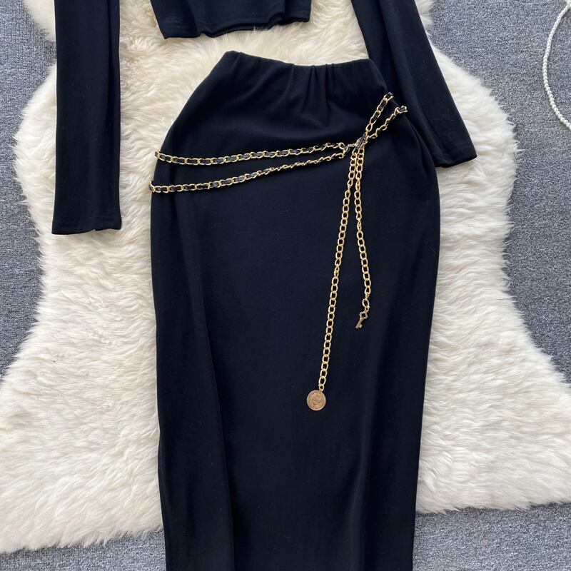 スパイスリンクス ホルターネック 長袖 Tシャツ トップ ツーピース スーツ レディース ハイウエスト ミッドレングス スリムフィット ヒップスカート ロング lyxaj71584184970