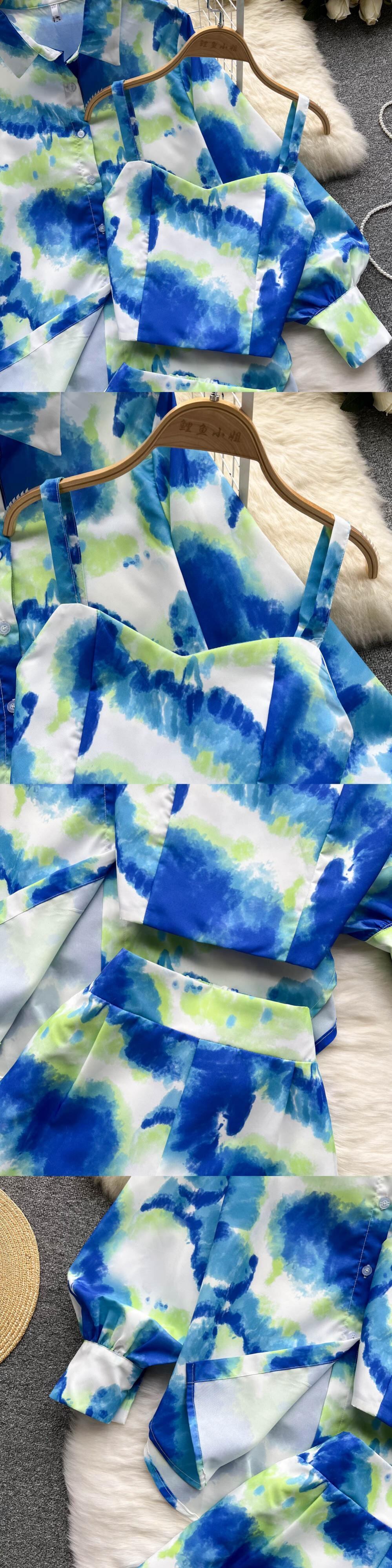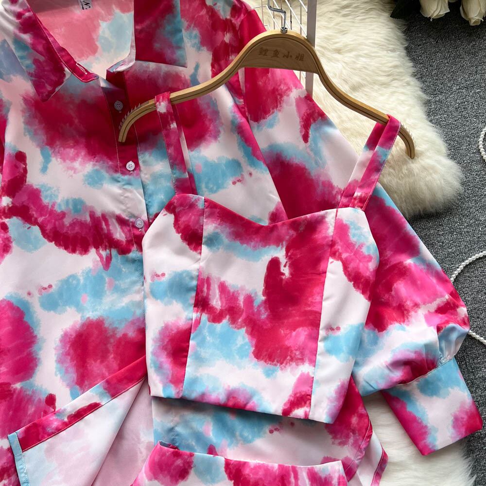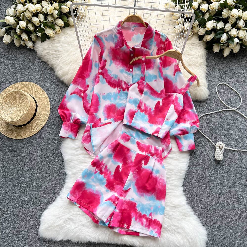 ヨーロッパとアメリカのinsの女神ファンのレトロな絞り染めのスーツの女性のハイエンドな感覚は、甘くて塩辛い、甘くて多彩な気質のスリーピースのスーツです 大人ガーリー スウィート キュート カジュアル ヨーロピアン lyxaj6839920770
