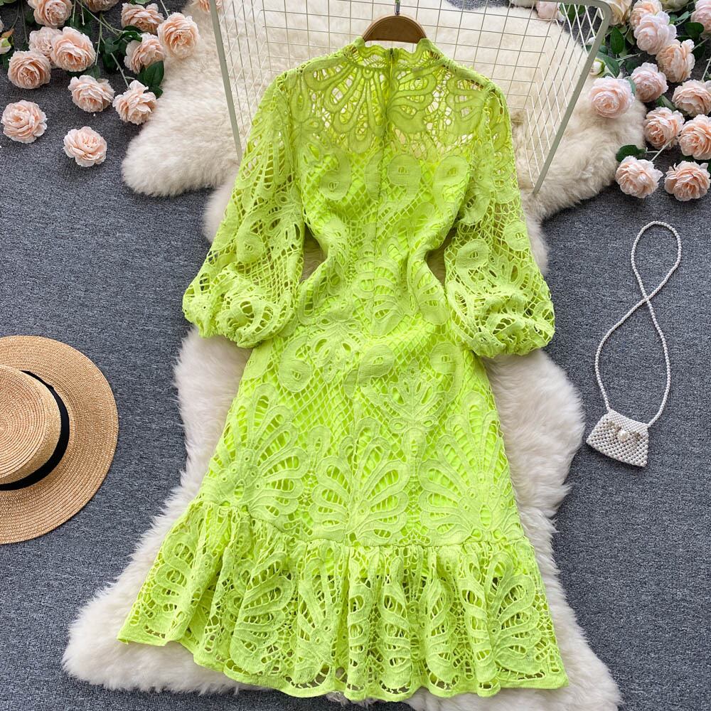 フランスのレトロなレースのドレス 2022 新しい女性のウエストは薄く、超妖精の気質の有名人 a ライン フィッシュテール スカート Aライン lyxaj7547206127