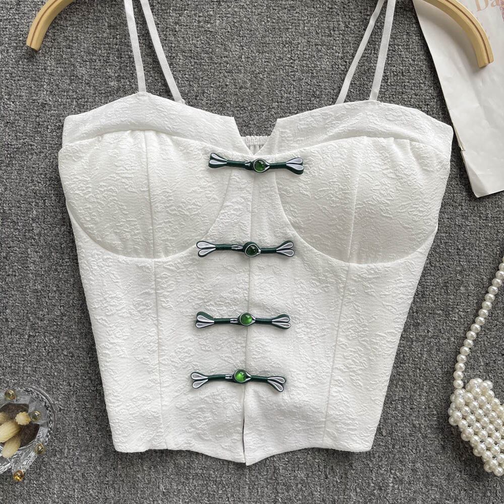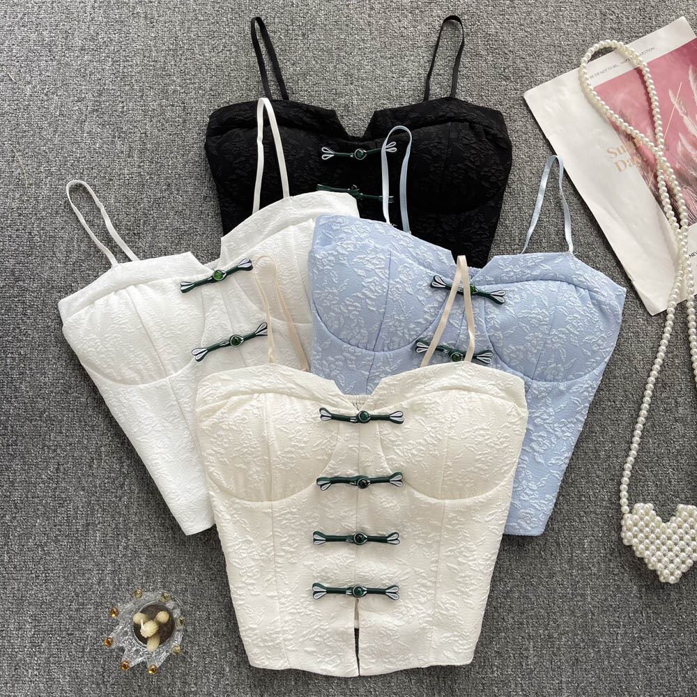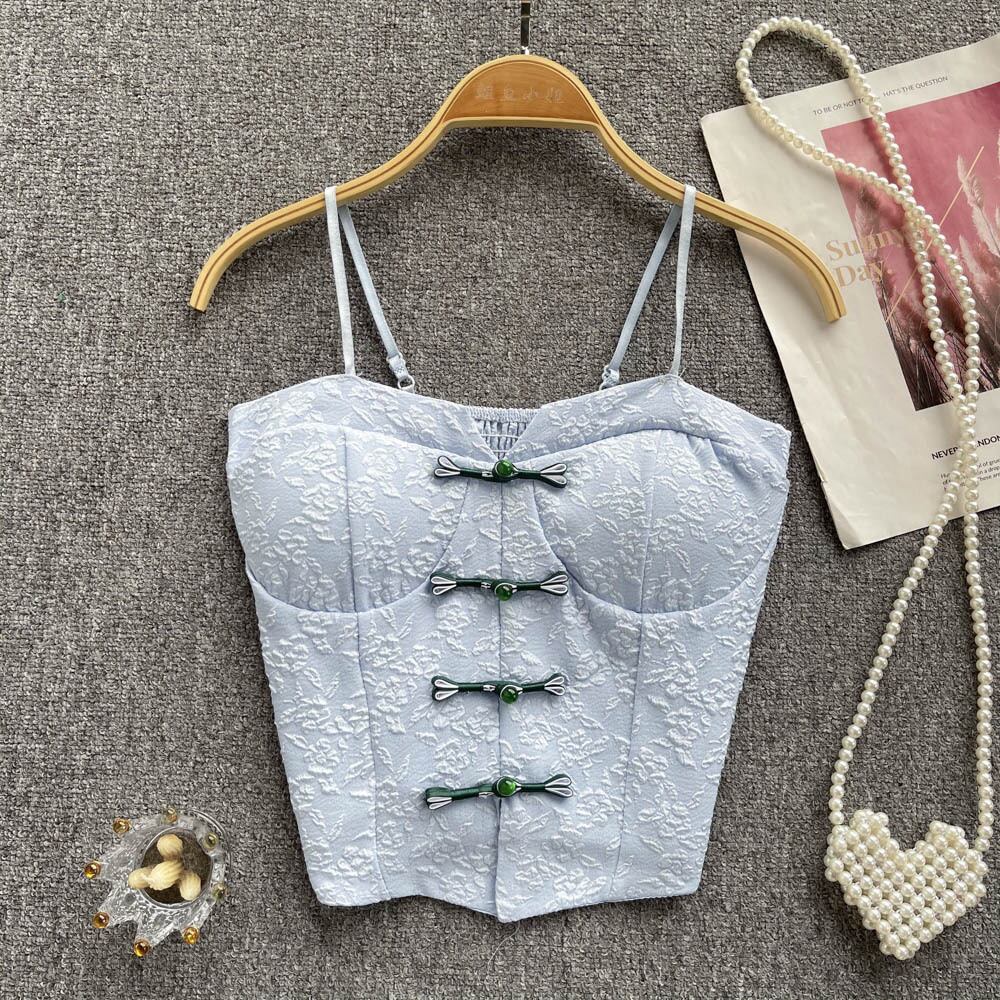 Chinese-style button-down slim-fit short shirt women's design sense niche outside wear pure desire temperament off-the-shoulder camisole ショート ピュア lyxaj17283379904
