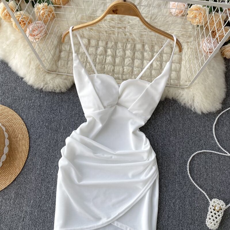 夏の不規則なサスペンダー スカート気質ローカット自己修養ファッション バッグ ヒップ ショート スカート胸のないセクシーなドレス小さな サマー 夏物 lyxaj32035096878