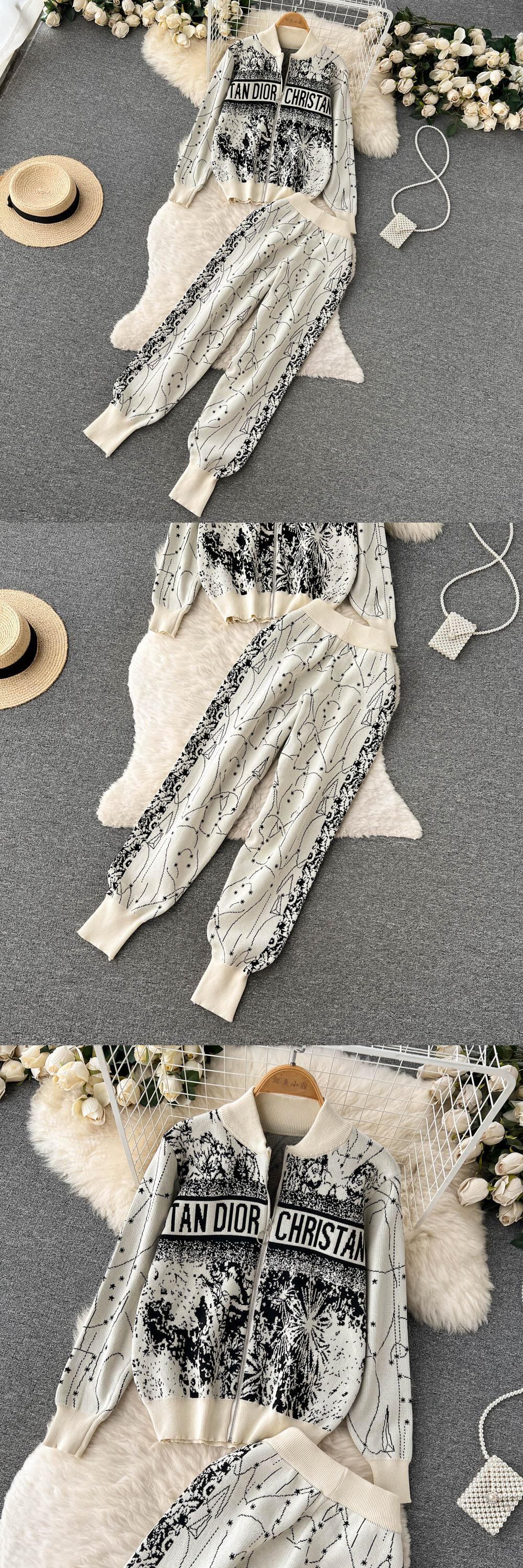 ヨーロッパ雑貨 人気 スーツ レディース 秋 高級 プリント ジッパー ニット カーディガン コルセット パンツ おしゃれ 外国風 ツーピース スーツ オータム 秋物 ヨーロピアン lyxaj62233570039