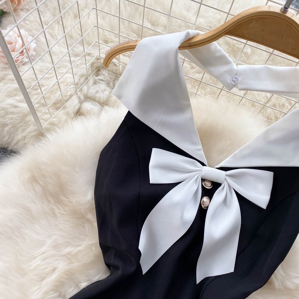 香港風味の純粋な欲望のニッチなホットガールの弓のドレスの夏の新しい女性のデザインの背中の開いたホルターサスペンダースカートの感覚 リボン サマー 夏物 ピュア lyxaj39499886196