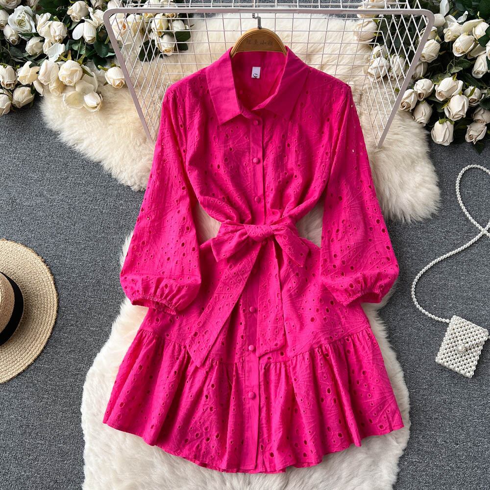 サマードレス 2022 新レディースラペルファッション中空パフスリーブドレスティーブレークフレンチ気質 A ラインスカート 夏物 Aライン lyxaj29142887519