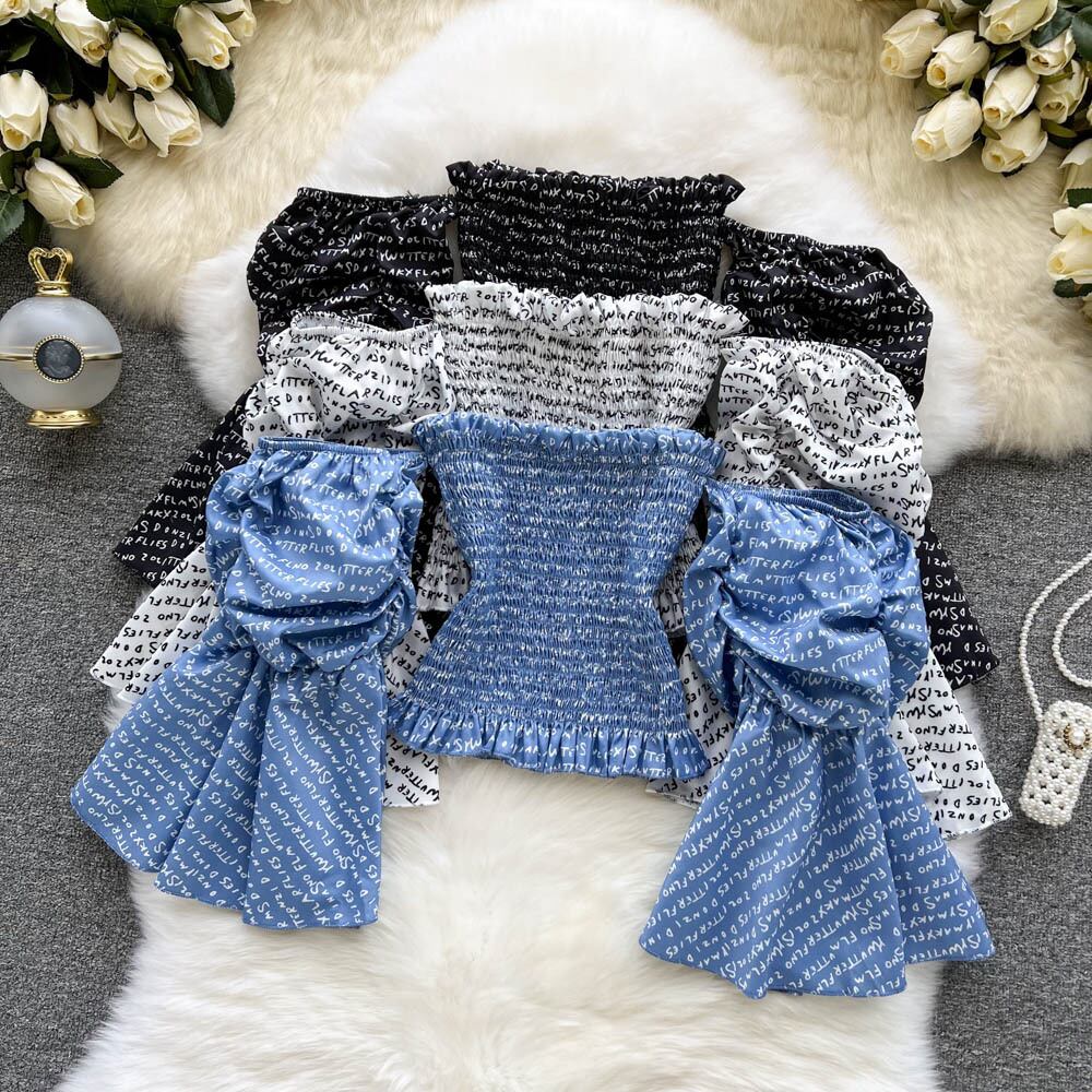 シックな風の妖精は甘くてスリム、スリムでセクシー、一言衿チューブトップシャツ、女性のデザインセンス、ニッチなショートトップ 大人ガーリー スウィート キュート カジュアル lyxaj93559151677