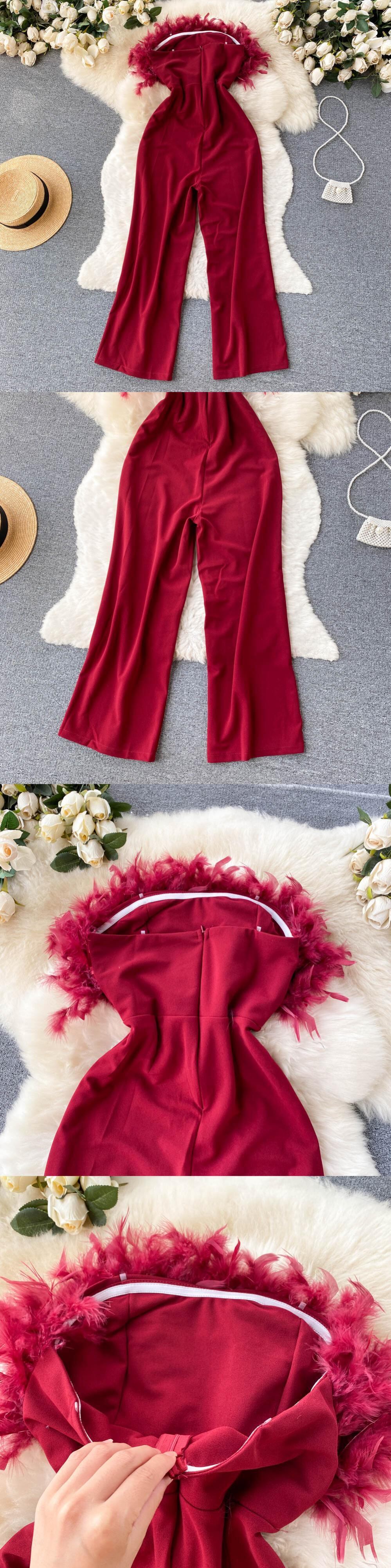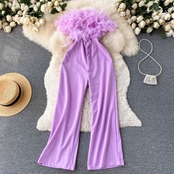 上質なニッチなデザイン感のプラッシュチューブトップワンピースパンツ レディース 夏新作 ゆったり ワイドレッグ ストレートパンツ サマー 夏物 lyxaj72845449187