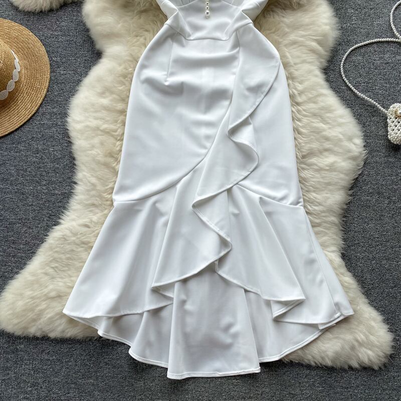 ロイヤルシスターの軽くて親しみやすいスタイルのデザインセンスフリルヒップドレス夏の女性のフランスの気質が見事なミドル丈のスカート サマー 夏物 lyxaj72222335439