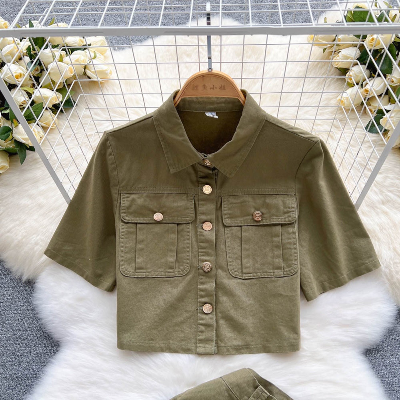 ウエスタンスタイルの年齢を減らすデニムショーツツーピーススーツ女性の2022年夏新作ハイウエストへそ半袖シャツトップ サマー 夏物 ブルマー lyxaj69187112647