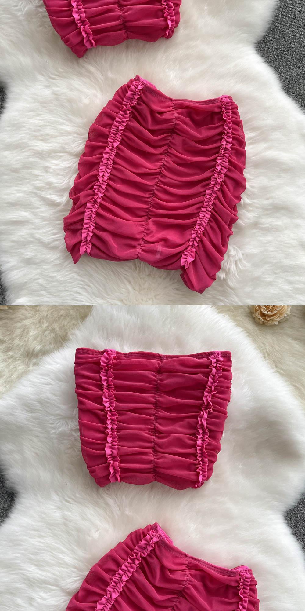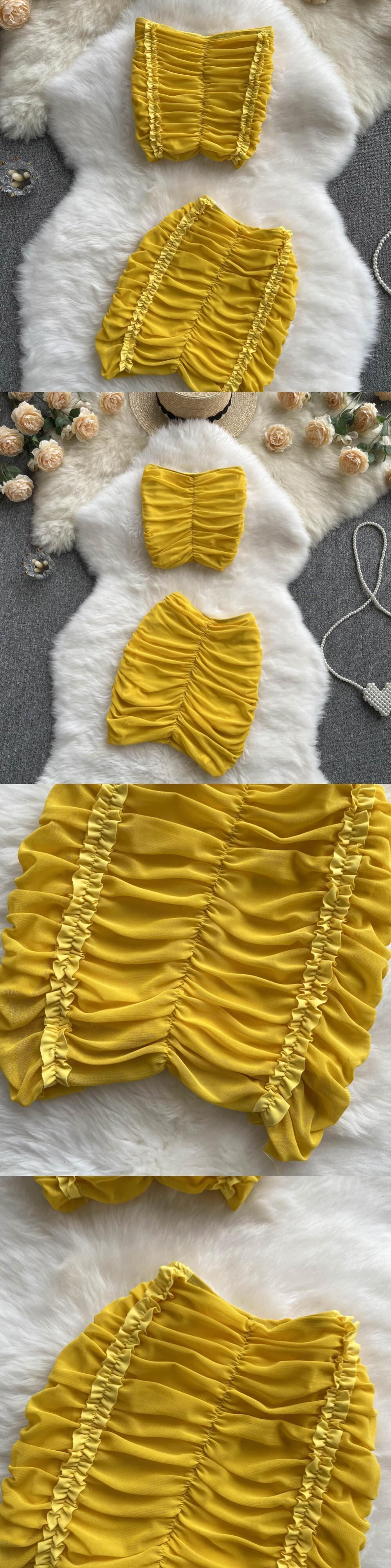 純粋な欲望のホットガールは、プリーツデザインのセンスニッチチューブトップベスト+ヒップショートスカートのファッショナブルなツーピーススーツを着ています lyxaj34529620618