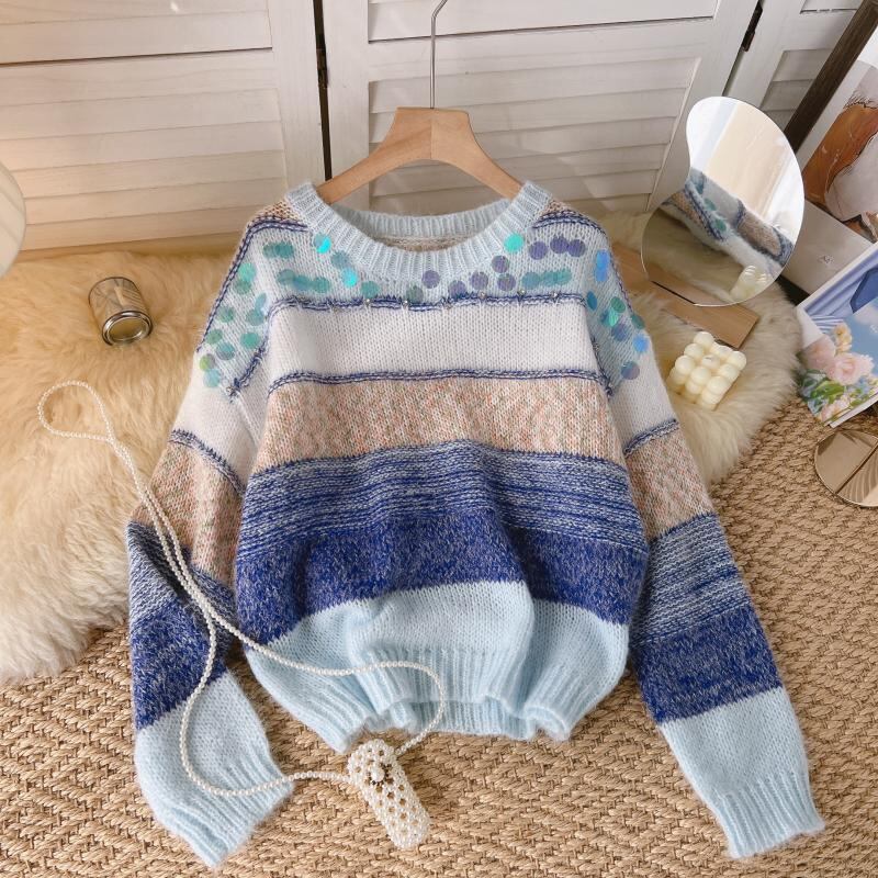 フレンチ ジェントル スタイル コントラスト カラー ラウンド ネック ソフト モチモチ セーター 秋と冬の新しい女性の怠惰なスタイルの長袖ニット トップ ロング オータム 秋物 ウィンター 冬物 Oネック lyxaj70692531299