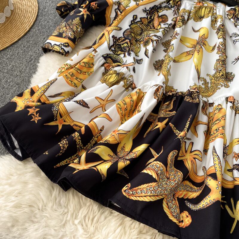 2022 春の新ヨーロッパとアメリカのスタイルイン気質レディースルーズ長袖プルオーバーホリデープリントシャツドレス ロング スプリング 春物 ヨーロピアン lyxaj96921555037