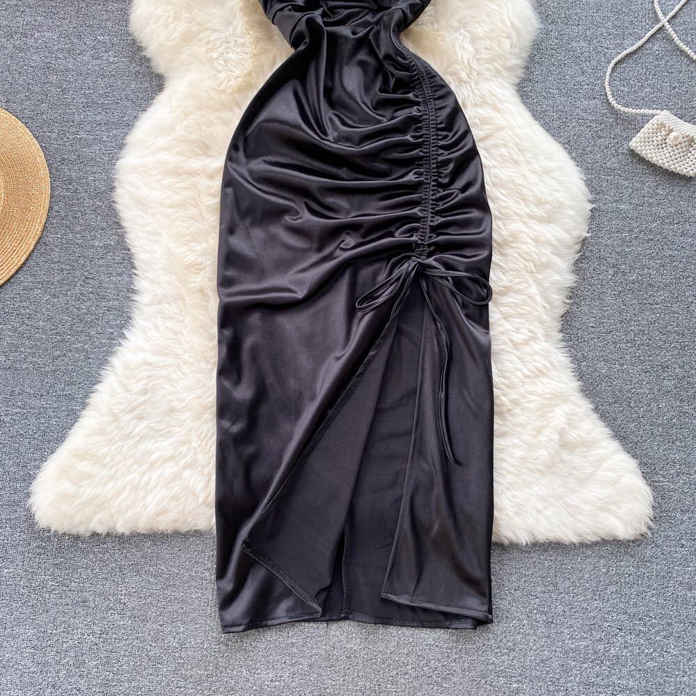 セクシーな女らしさヒョウ柄スクエアネックサスペンダードレス女性の夏の新しいプリーツ巾着ウエスト痩身ヒップスカート サマー 夏物 スクウェア lyxaj71034567387