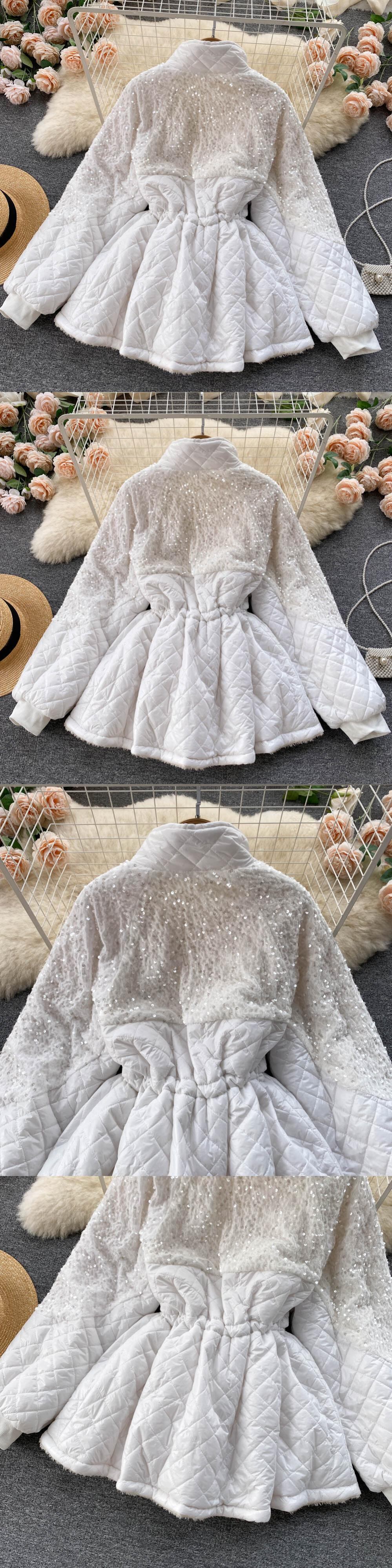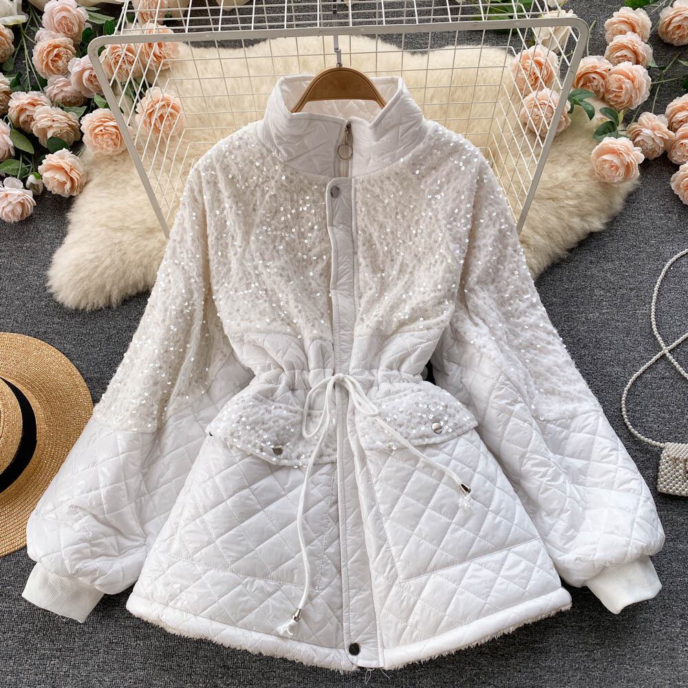 Celebrity light luxury small fragrance coat women's winter stand-up collar design fashion sequins drawstring waist warm cotton clothes コットン ウィンター 冬物 lyxaj39952011302