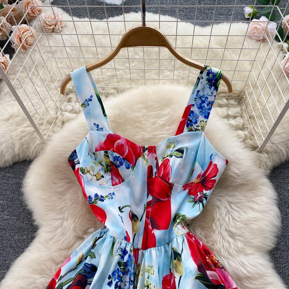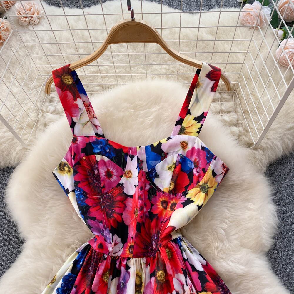スリング 2022 初春新作 フレンチスウィート レトロ 刺繍 プリント オープンバック ミドル丈 フェアリードレス トレンディ レッド 大人ガーリー キュート カジュアル スプリング 春物 lyxaj26660233678