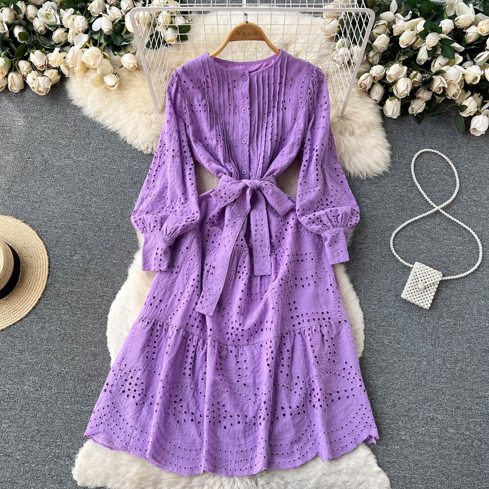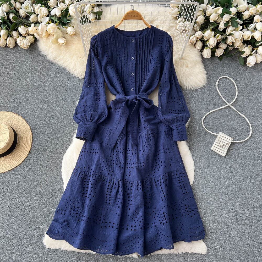 妖精のスカートシックな優しい中空ドレス 2022 夏レースアップ薄くてエレガントな気質スーパー妖精ビッグスイングドレス サマー 夏物 lyxaj86763338156