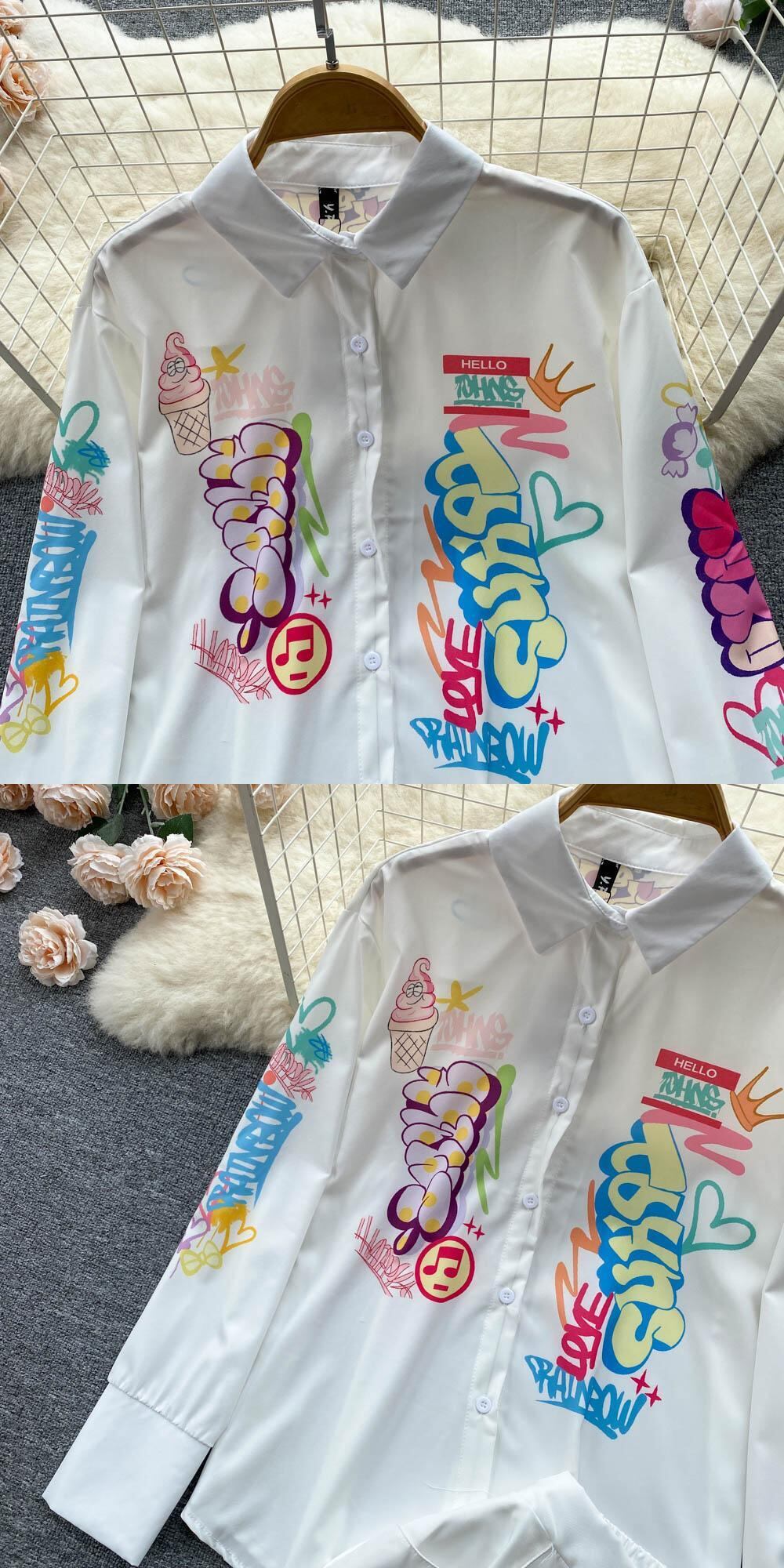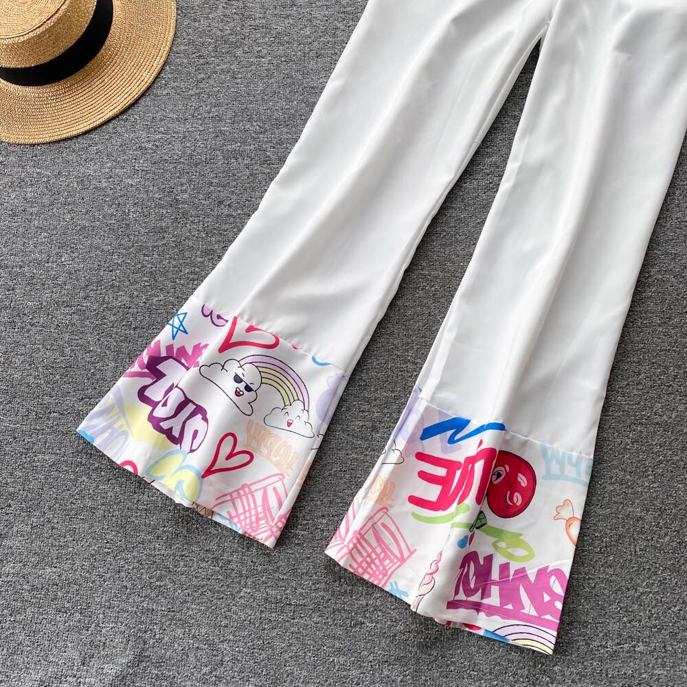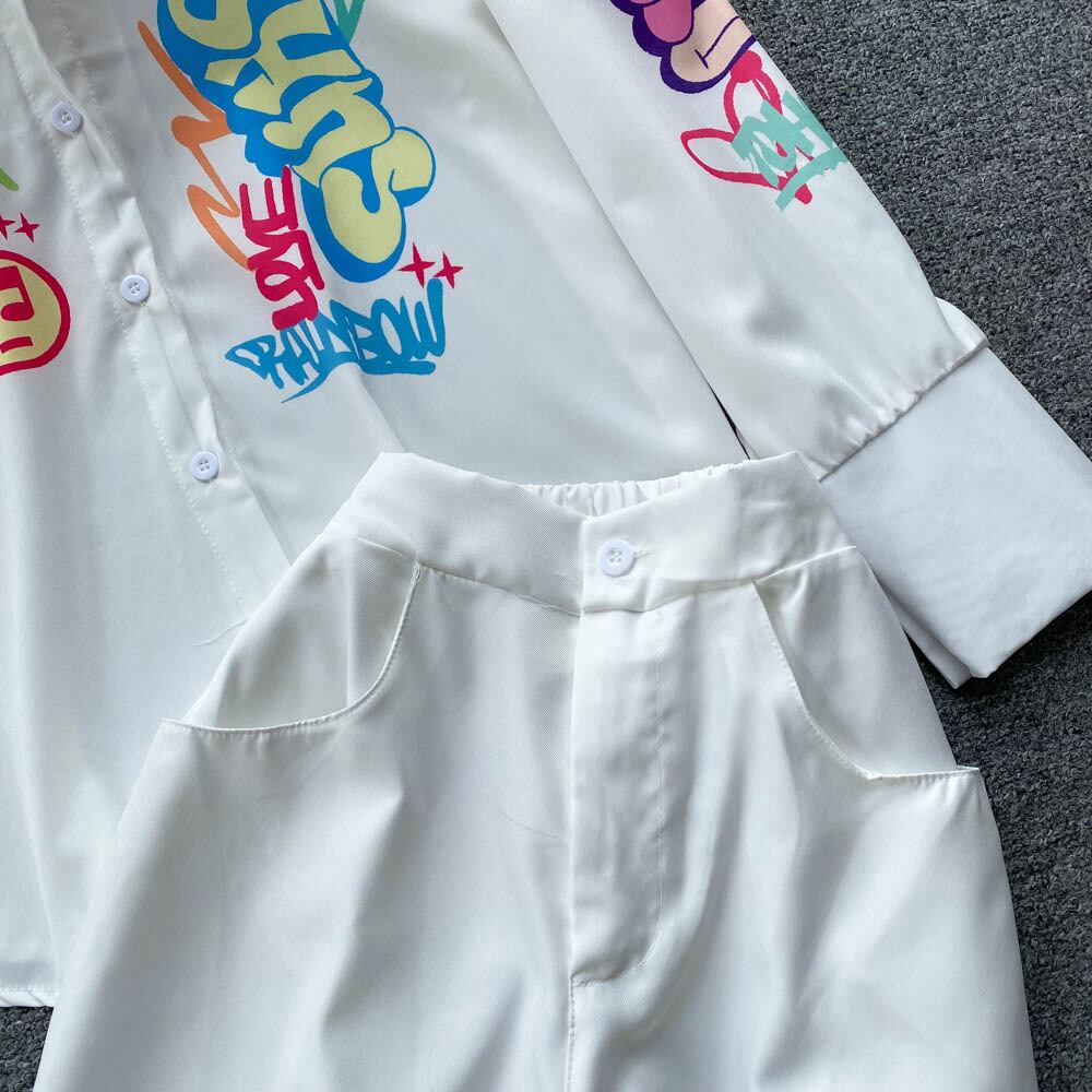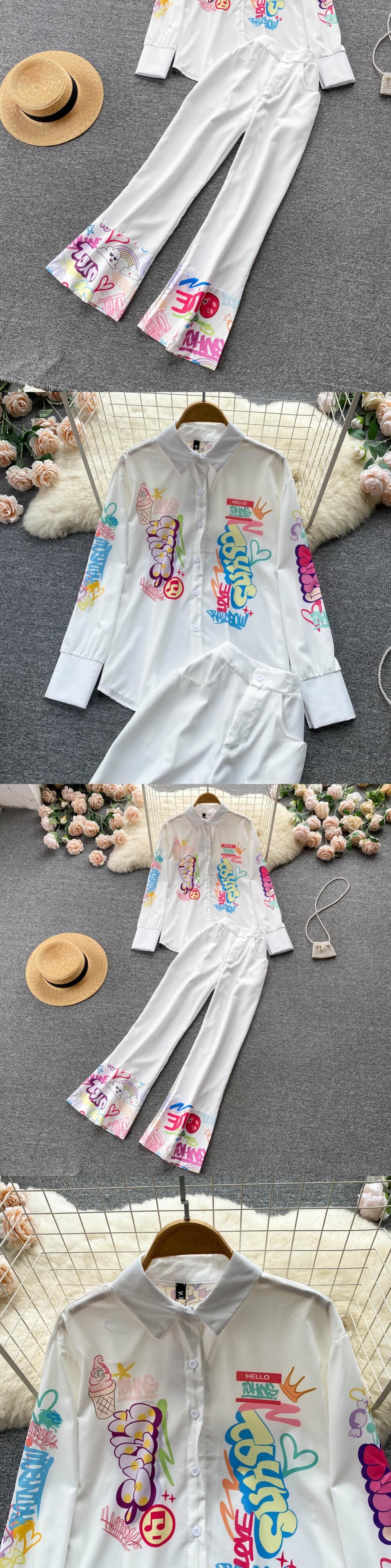 デザインセンス 新作 文字プリント おしゃれ スーツ 長袖 ラペル シャツ レディース ハイウエスト スリム ワイドパンツ 2点セット ロング lyxaj95621688067