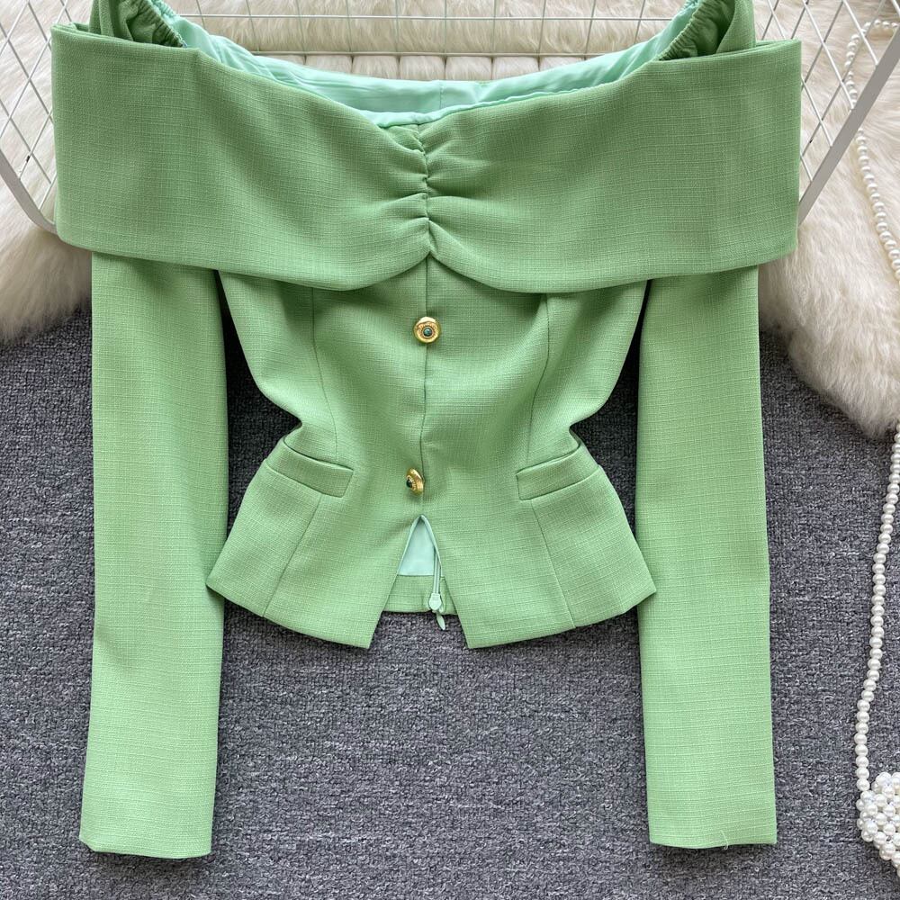 有名人の気質のニッチなデザインのワンショルダーシャツ秋の女性のオフショルダーウエストスリムな長袖のシックな小さなトップ ロング オータム 秋物 lyxaj98876933158