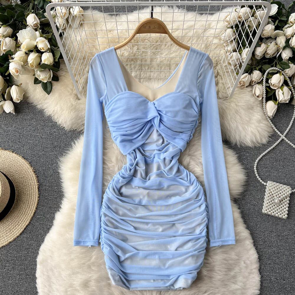 2022 spring new pure desire style sexy square neck pleated wrap hip waist velvet bottoming skirt design sense dress プリーツ スプリング 春物 スカート ピュア スクウェア lyxaj54403474436