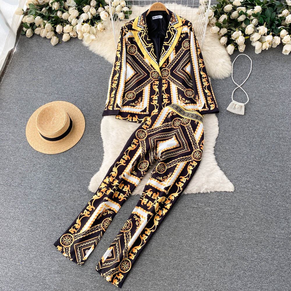 カジュアル ファッション プリント スーツ スーツ レディース 春秋 長袖 ゆったり スーツ ジャケット + スリムパンツ 2点セット ロング スプリング 春物 オータム 秋物 lyxaj42534609683
