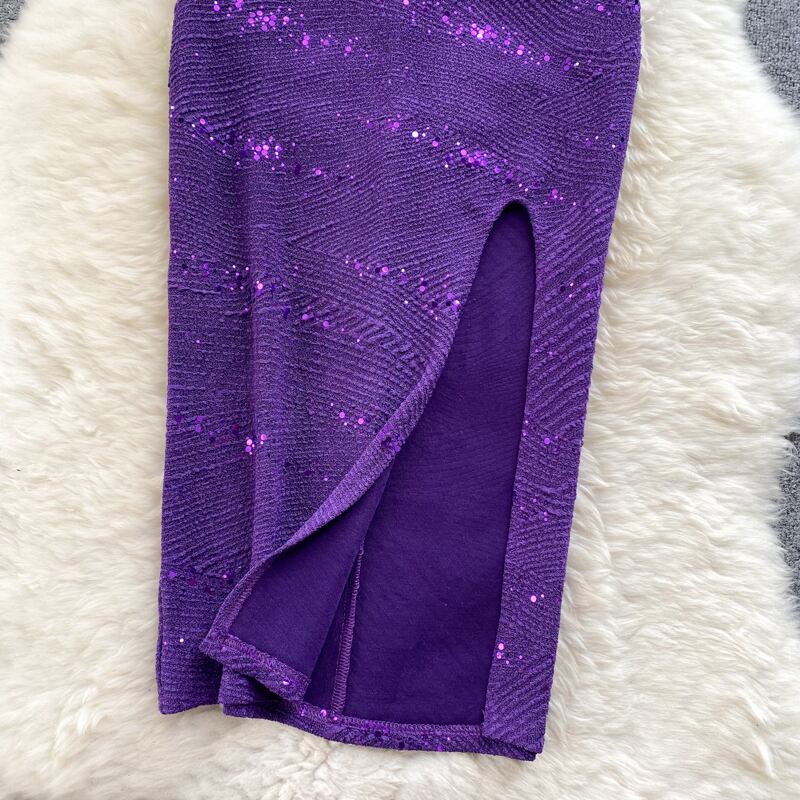 Pear-shaped body sequins waist slim and beautiful dress summer women's high-end slit bag hip midi skirt サマー 夏物 スカート スリム lyxaj5593046754