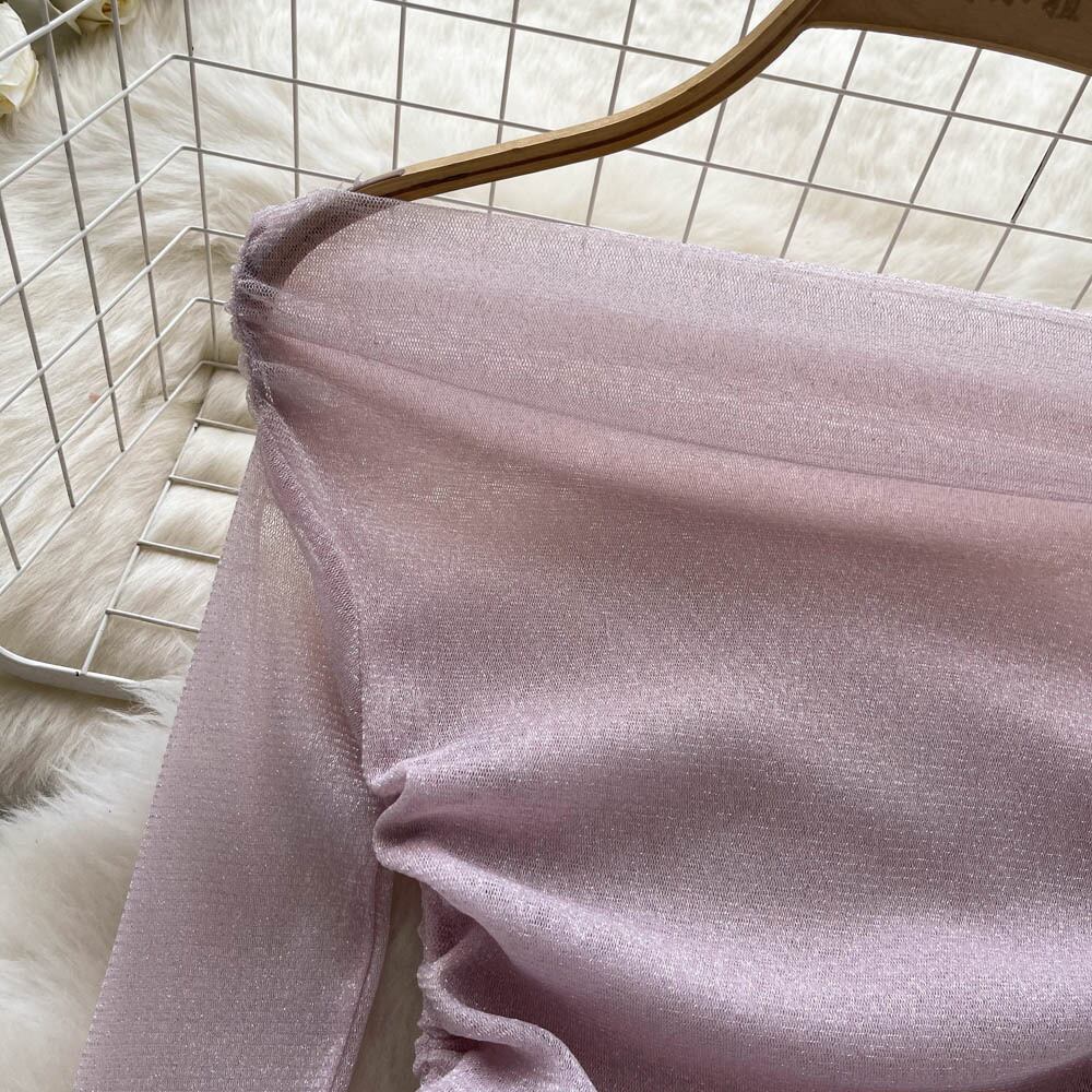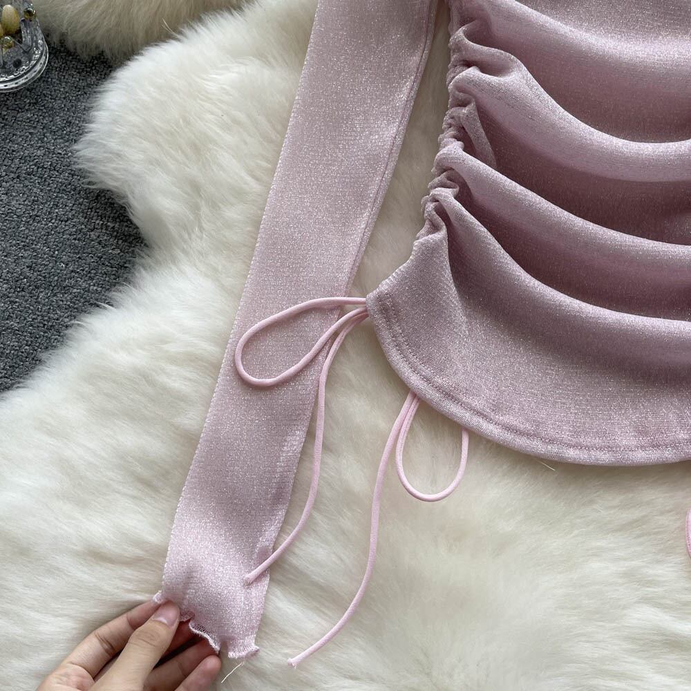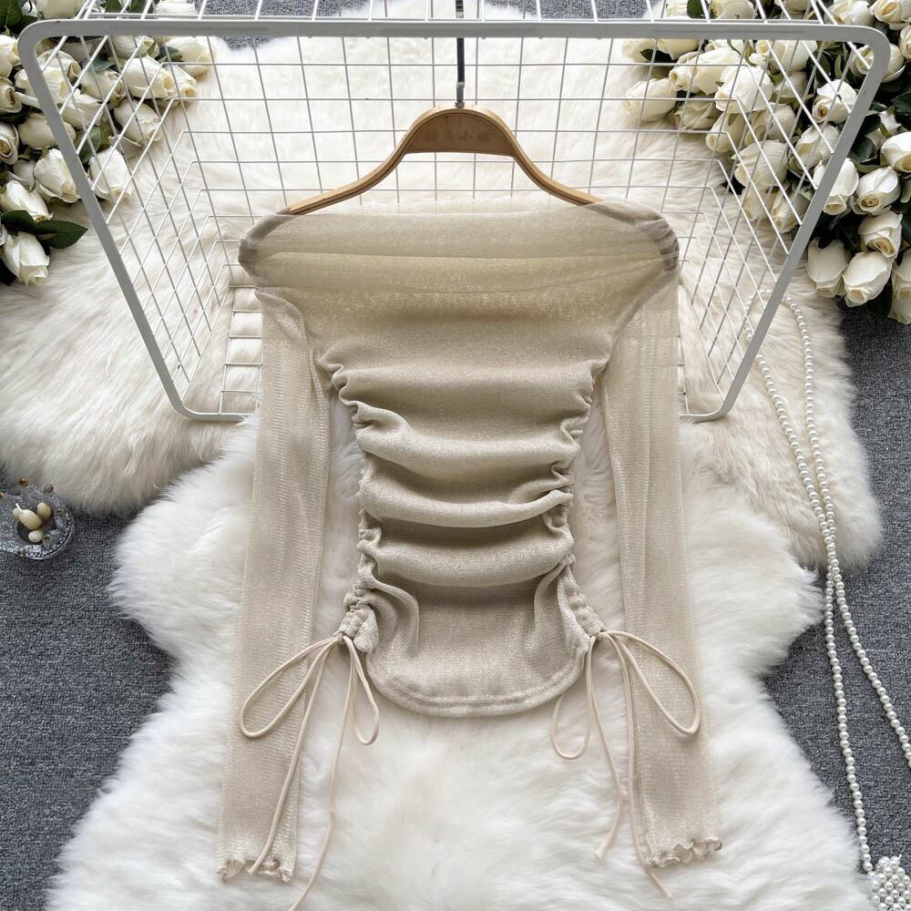ピュアラストスタイル デザイン感ニッチ 巾着 プリーツ ワンショルダー ボトムス シャツ レディース 秋新作 長袖 レースシャツ トップス ロング オータム 秋物 lyxaj18881061788