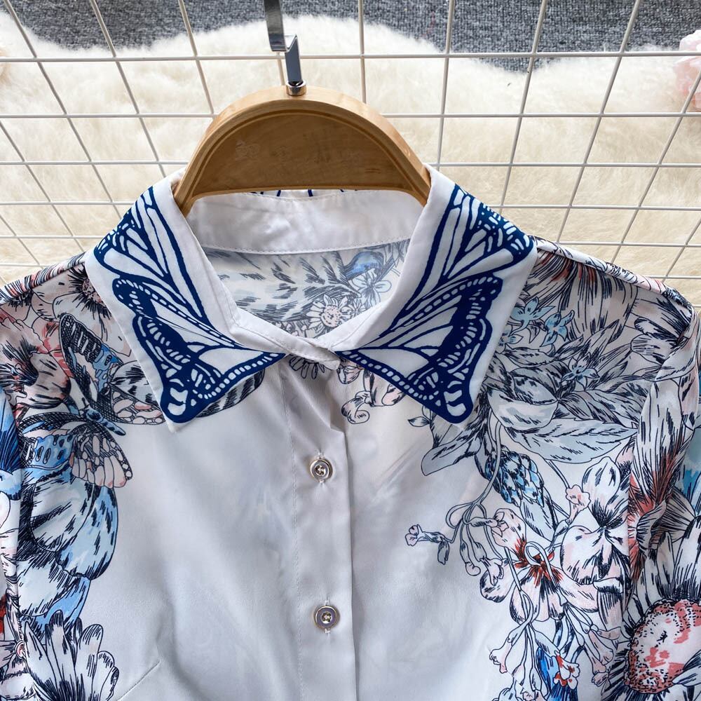 2022 夏新レトロ印刷クラシック蝶刺繍ラペル番号印刷ウエストシングルブレストドレス サマー 夏物 lyxaj33396715252