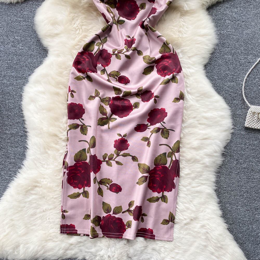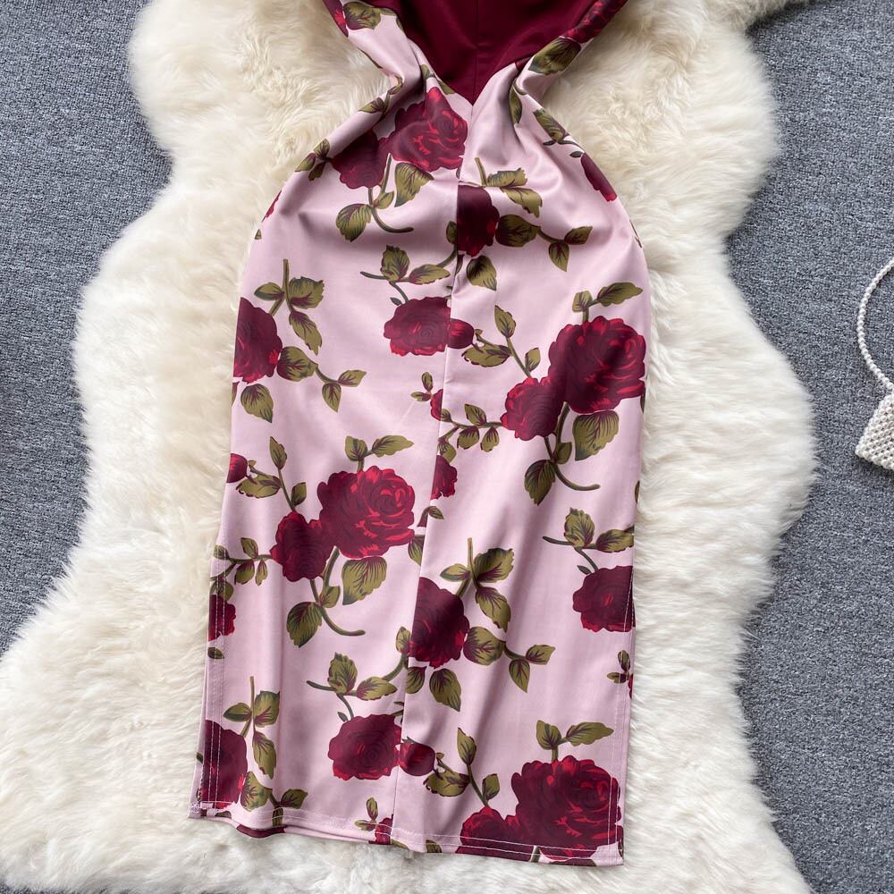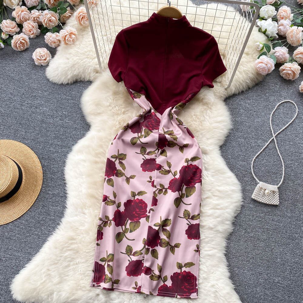 ライトおなじみのスタイルニッチデザインコントラストカラープリント中空ドレス女性の夏 2022 新しいウエストスリットバッグヒップスカート サマー 夏物 lyxaj67073643352