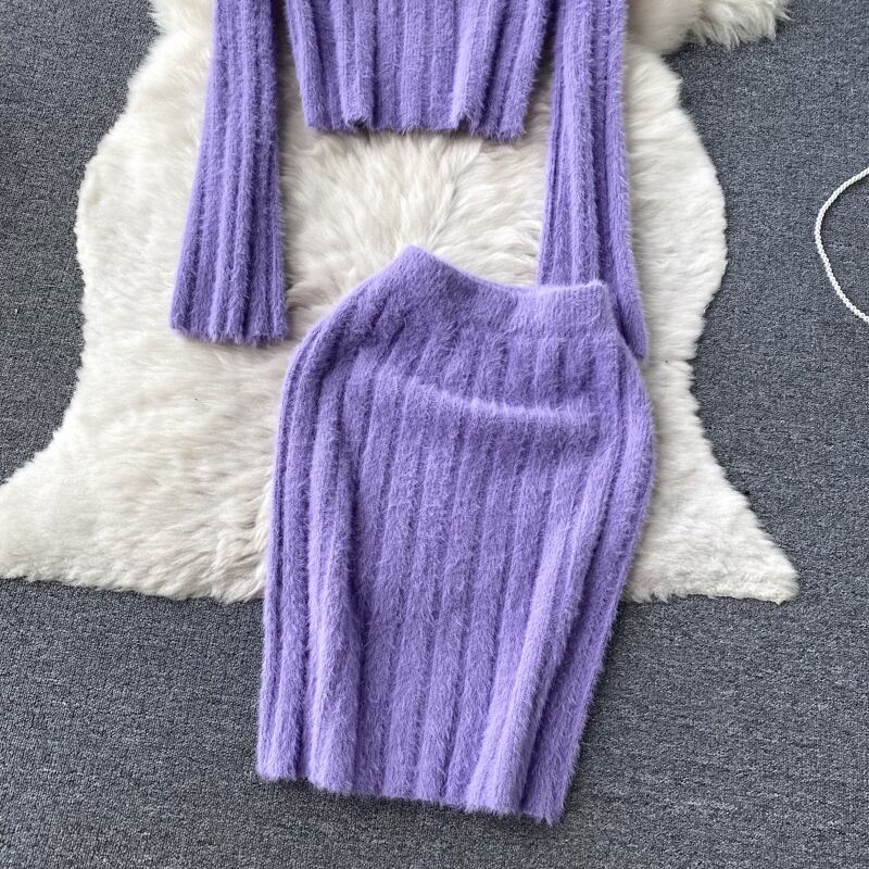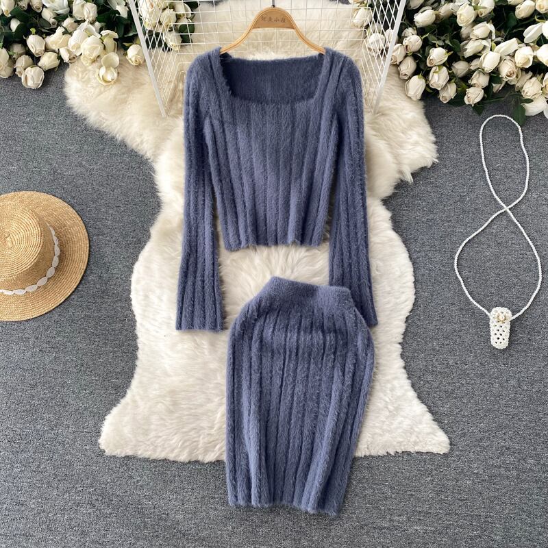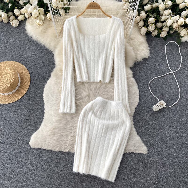 やさしい風 スーツ レディース 秋の新作 長袖 ニットトップス レディース 年齢対策 オールマッチ ショートパッケージ ヒップスカート 2点セット ロング オータム 秋物 lyxaj7975977814