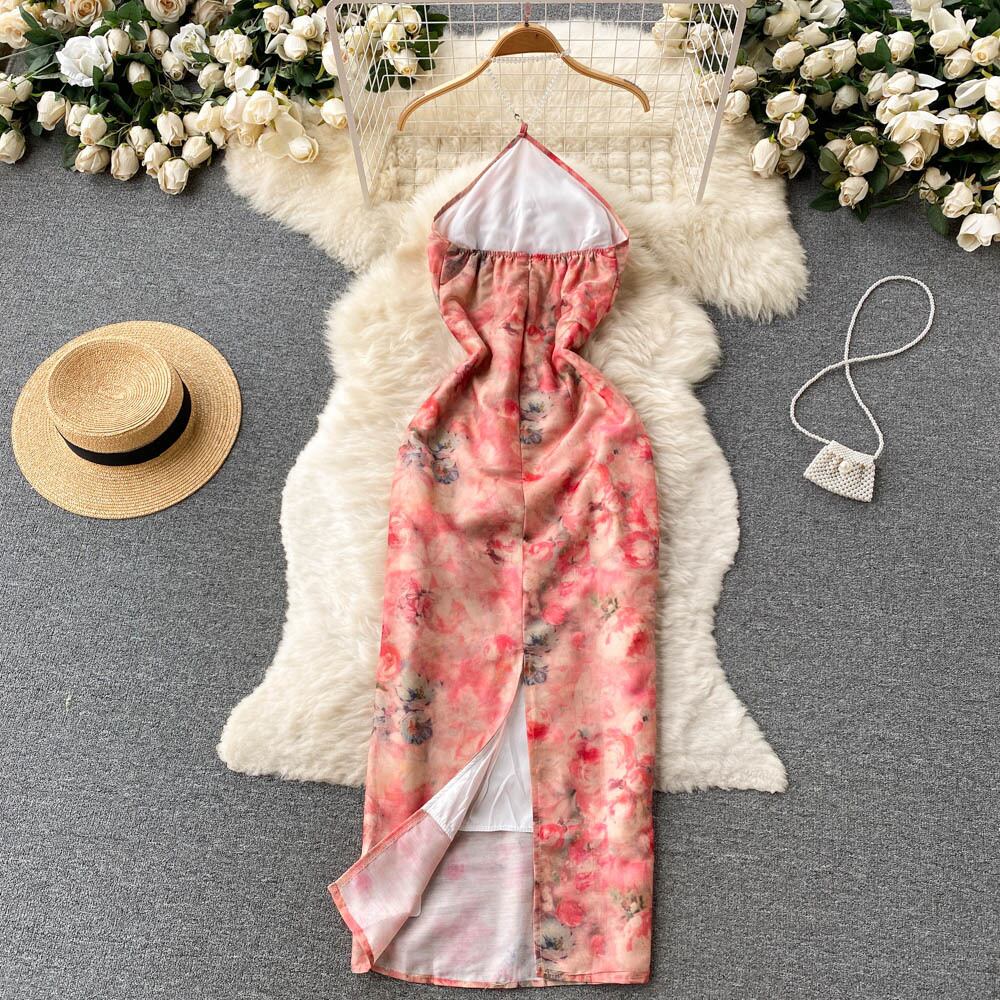 策謀ホルタードレス夏の女神ファンセクシーなチューブトップスリムミッドレングス油絵プリント気質ドレススカート サマー 夏物 lyxaj60302593933