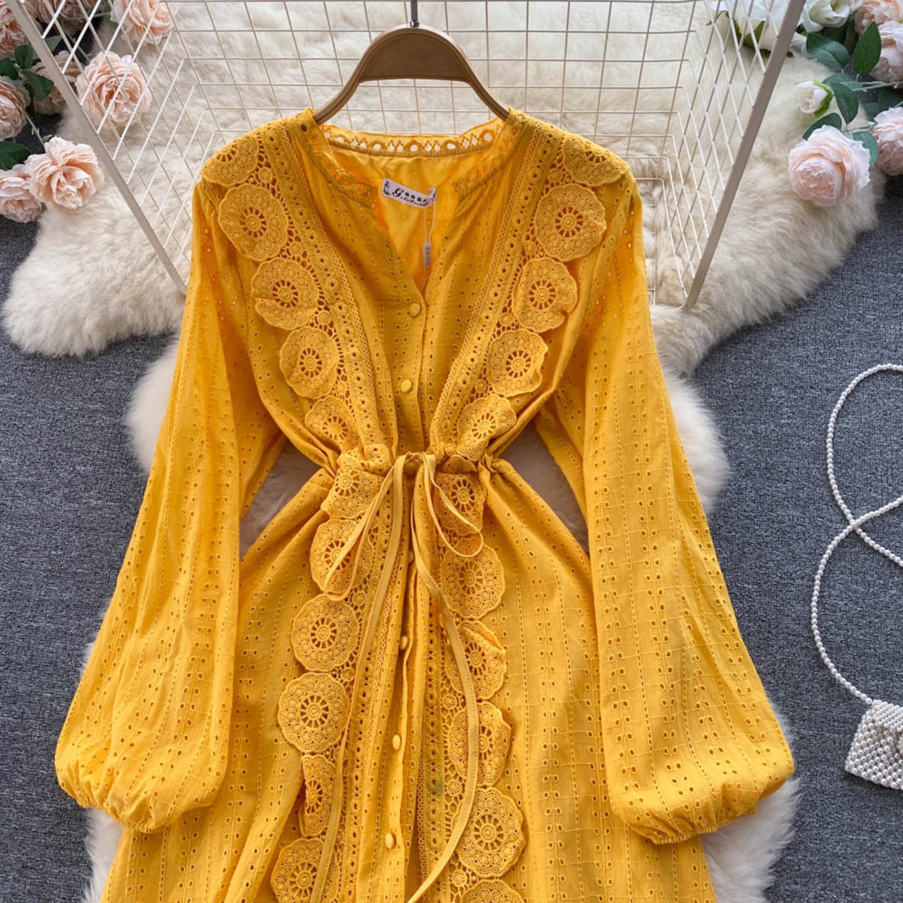 スカート 優しいスタイルのニッチな妖精ロングスカートキキョウ科フレンチティーブレイクスカートレースウエストシングルブレスト気質ドレス lyxaj43303760741