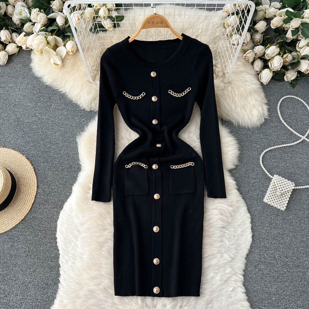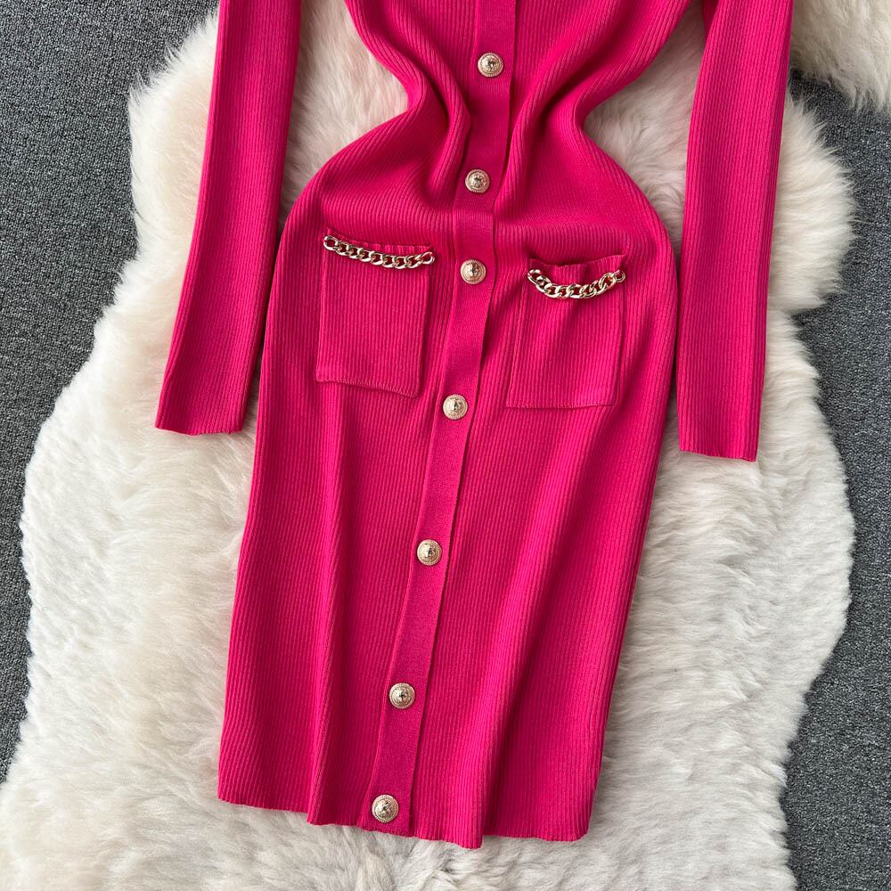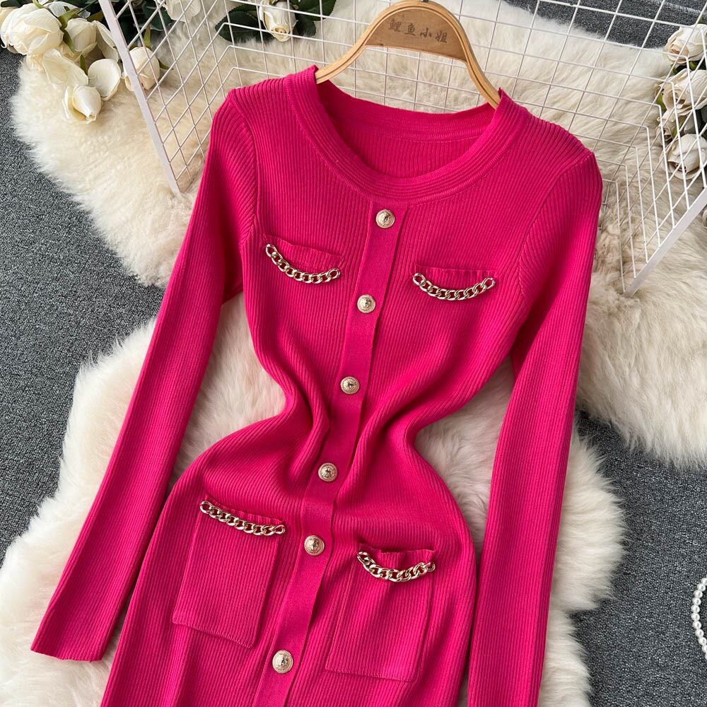 Xiaoxiang 風ライトおなじみの風ラウンド ネック ローズ レッド気質長袖ドレス秋の女性のウエスト スリム バッグ ヒップ スカート ロング オータム 秋物 Oネック lyxaj67480062830