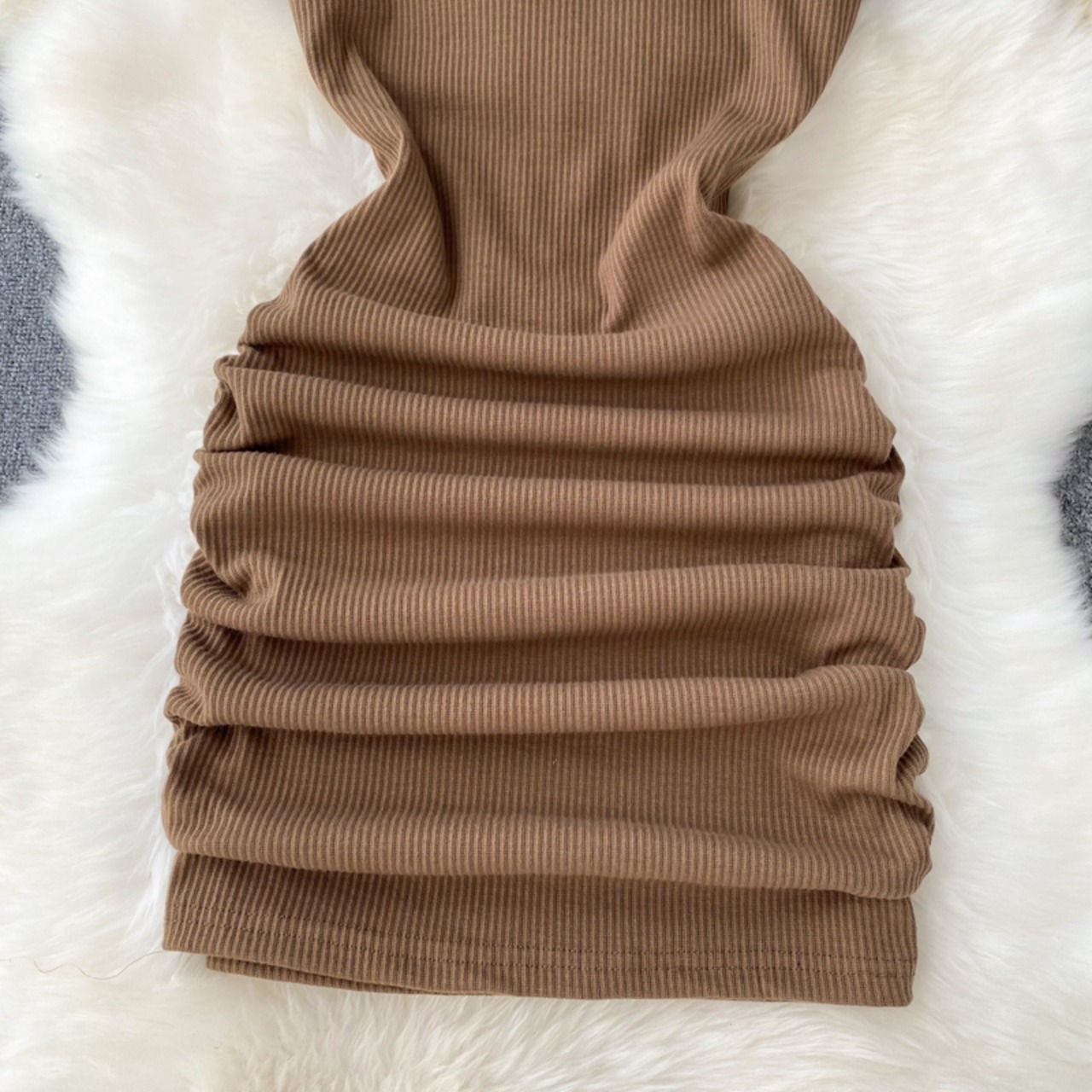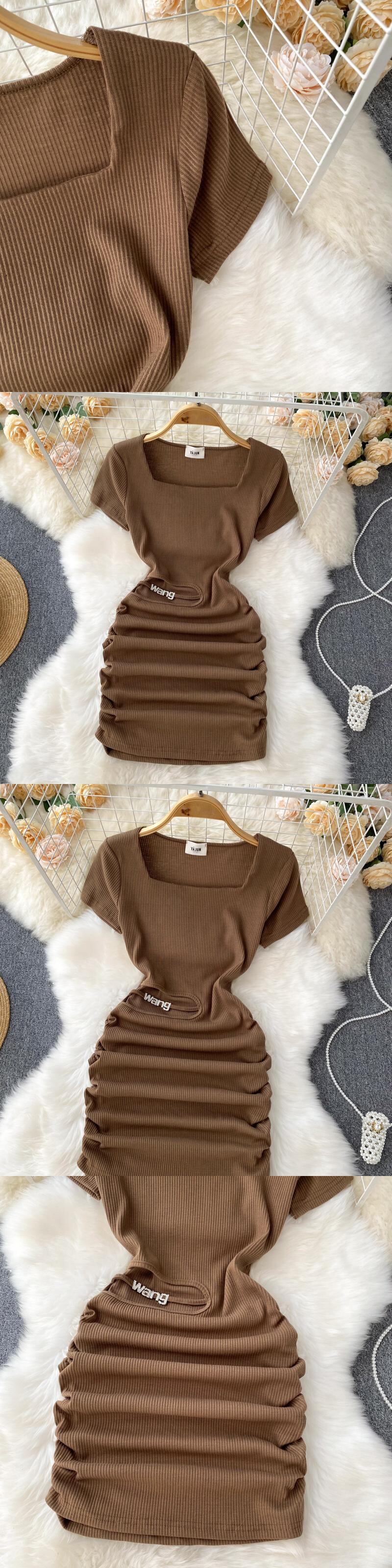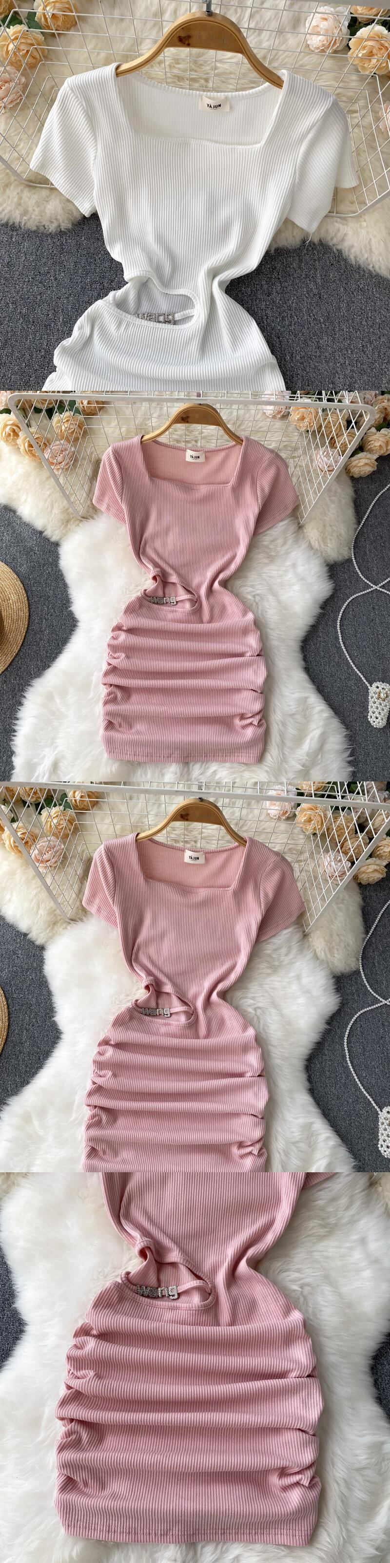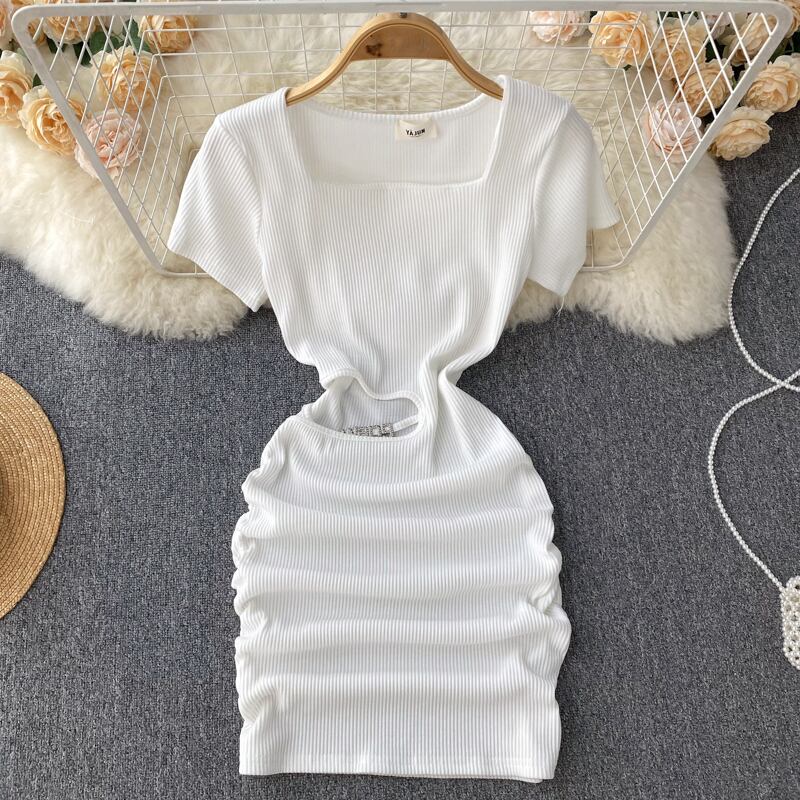 2022 summer new European and American ins new square neck short-sleeved t-shirt dress women's slim bag hip short skirt ショート サマー 夏物 スカート スリム Tシャツ スクウェア ヨーロピアン lyxaj20362231741