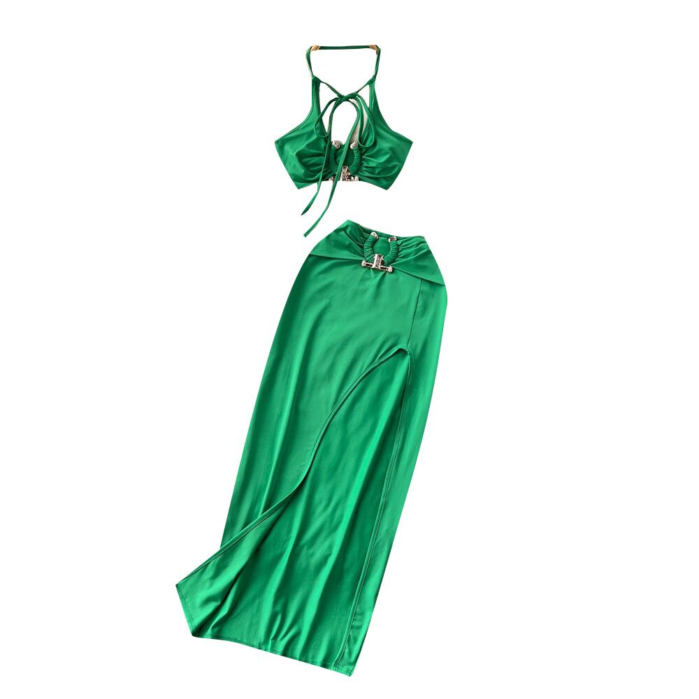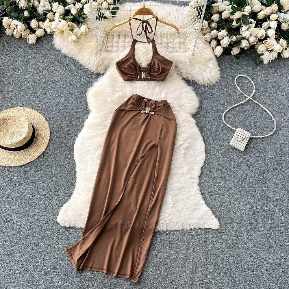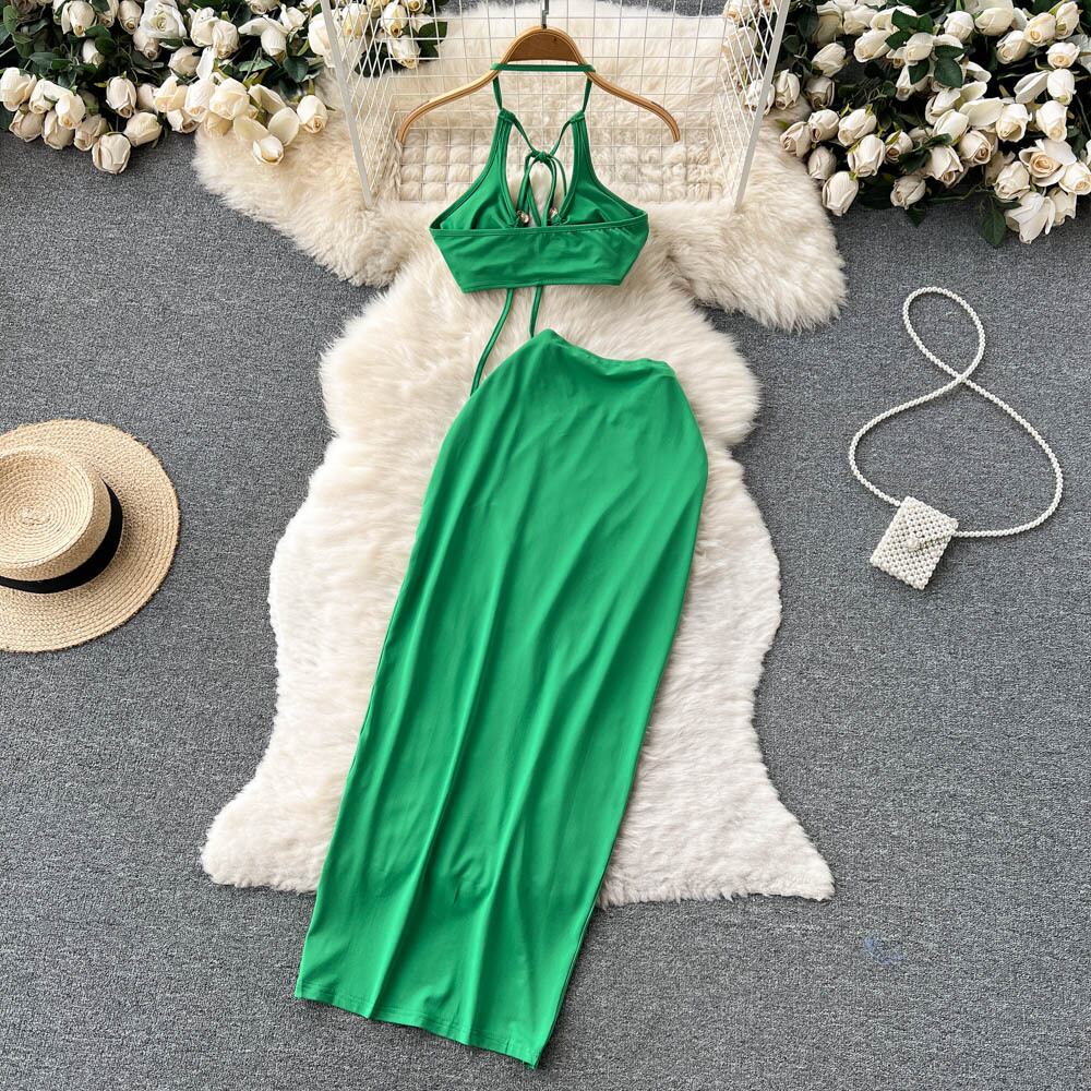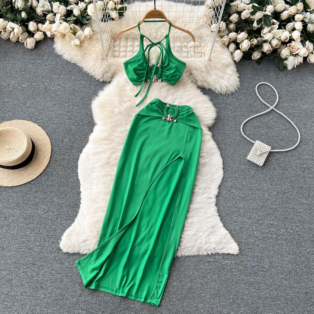 気質セレブツーピーススーツ女性夏ホットガールホルターネックスモールキャミソールハイウエストスリットバッグヒップスカート ハイウェスト サマー 夏物 lyxaj79436749499
