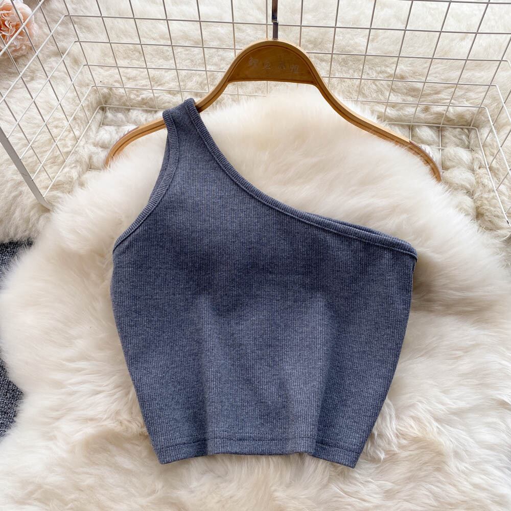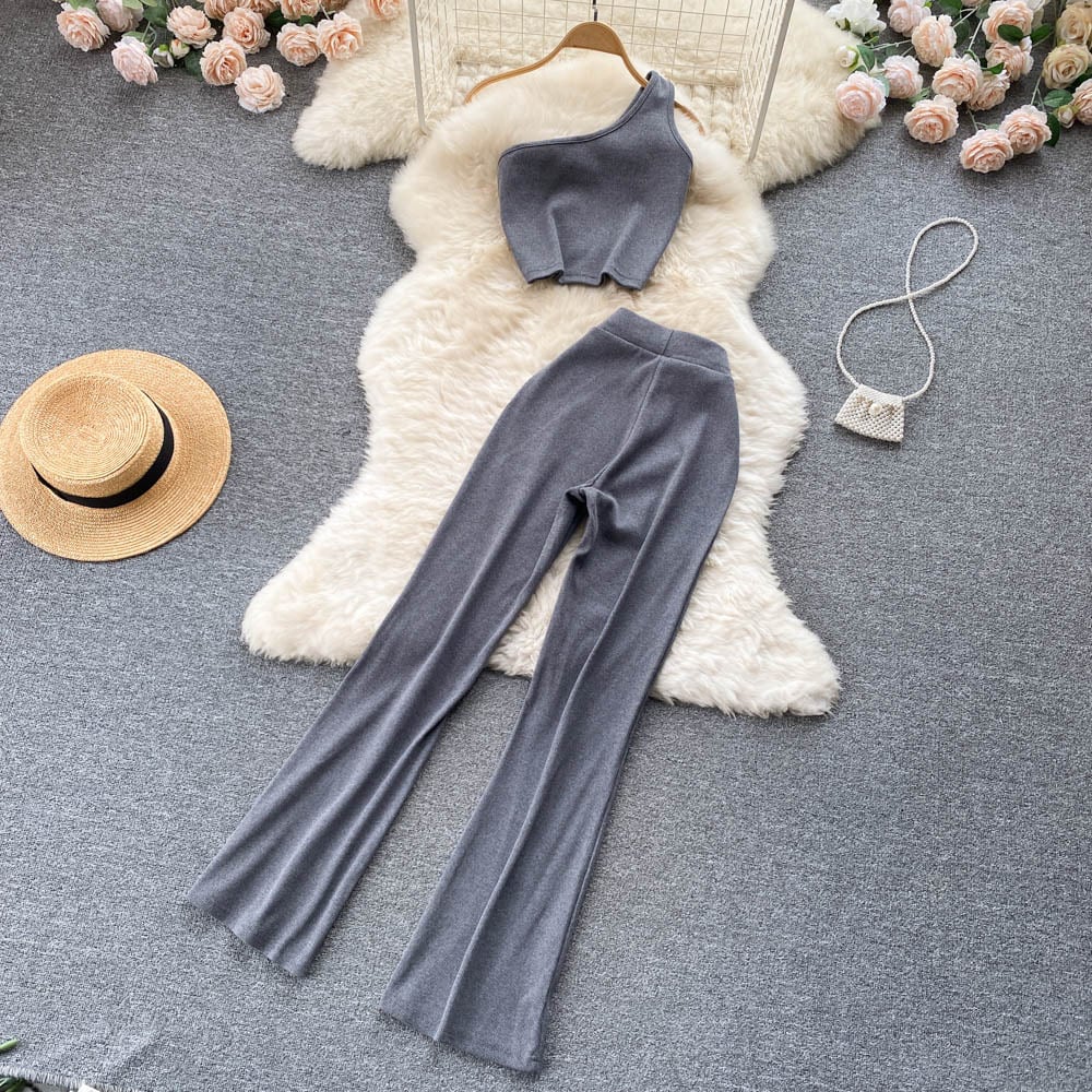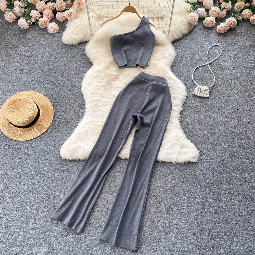 今年人気の美しいツーピーススーツ女性の夏のホットガール斜め肩ベストトップハイウエストスリットカジュアルロングパンツ ハイウェスト サマー 夏物 lyxaj92860667044