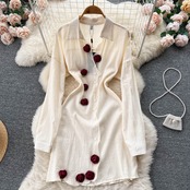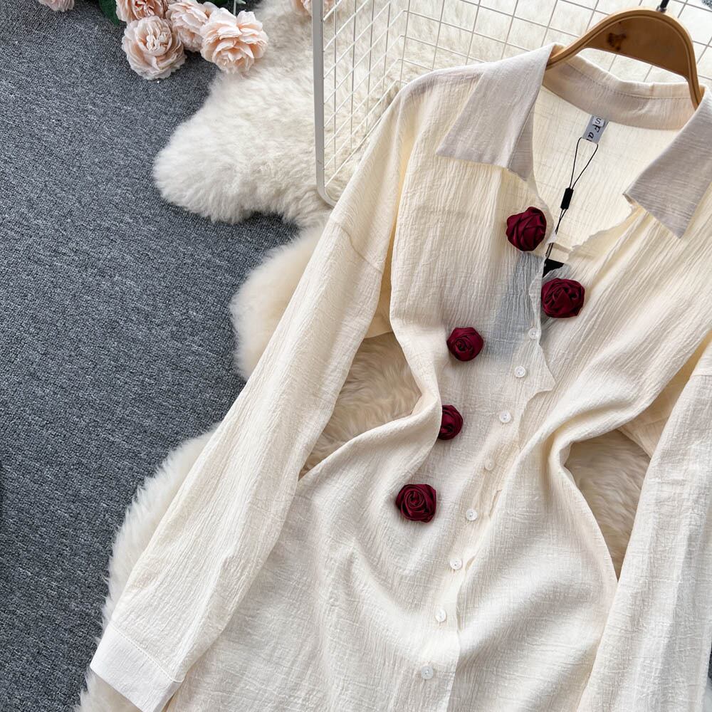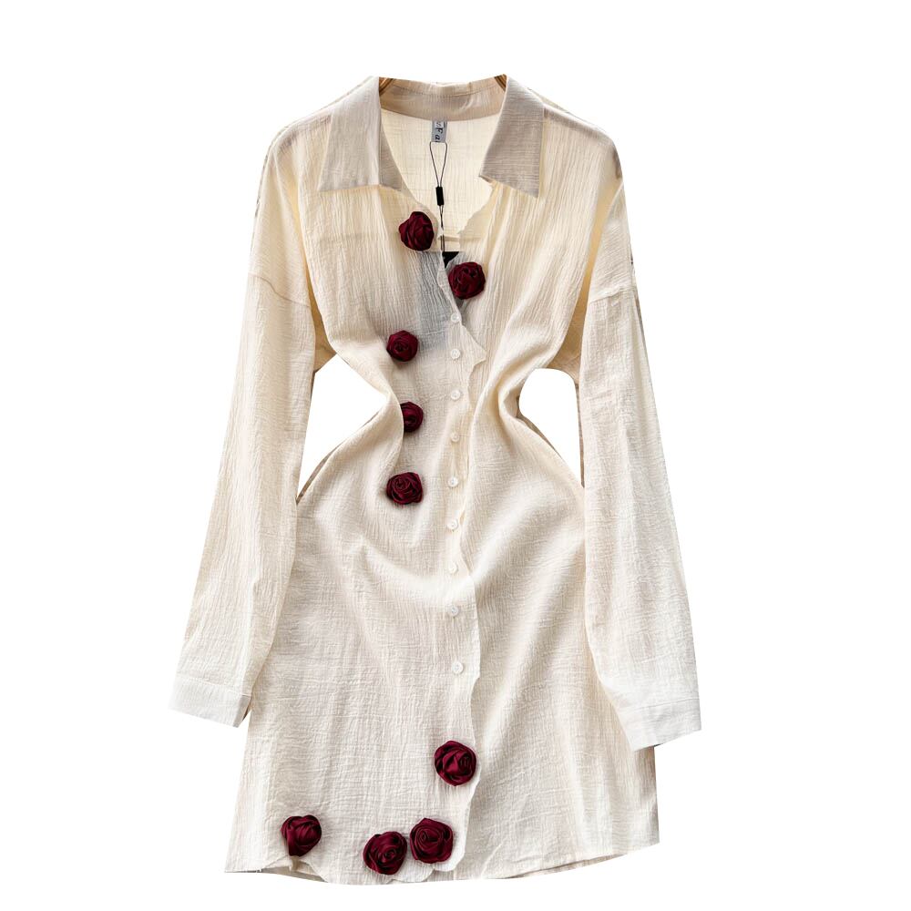 涼風気質長袖ドレス 2022 年秋の新しい女性の立体フラワー ウエスト シャツ ミディ スカート ロング オータム 秋物 フラワーデザイン lyxaj37862945408