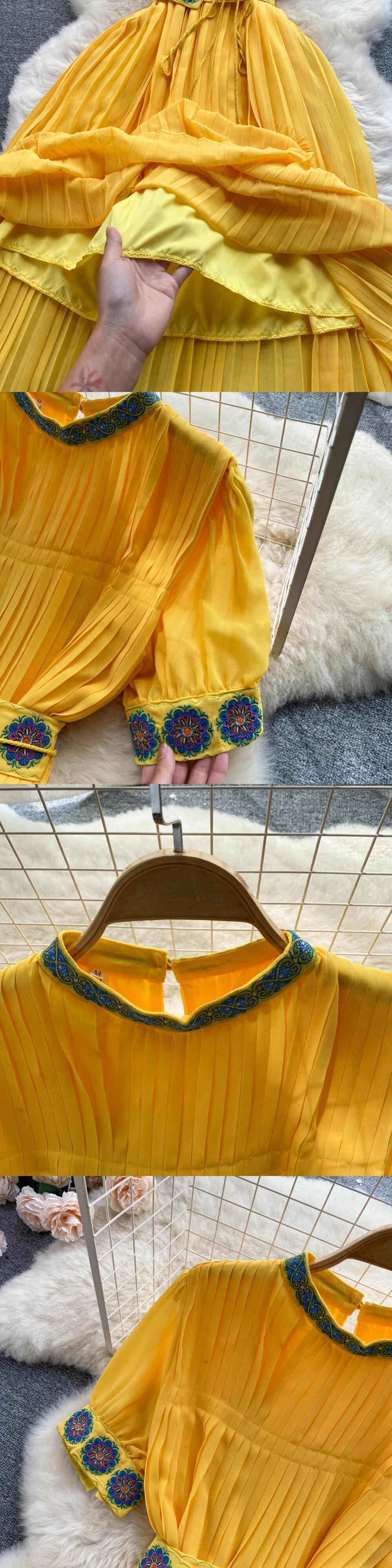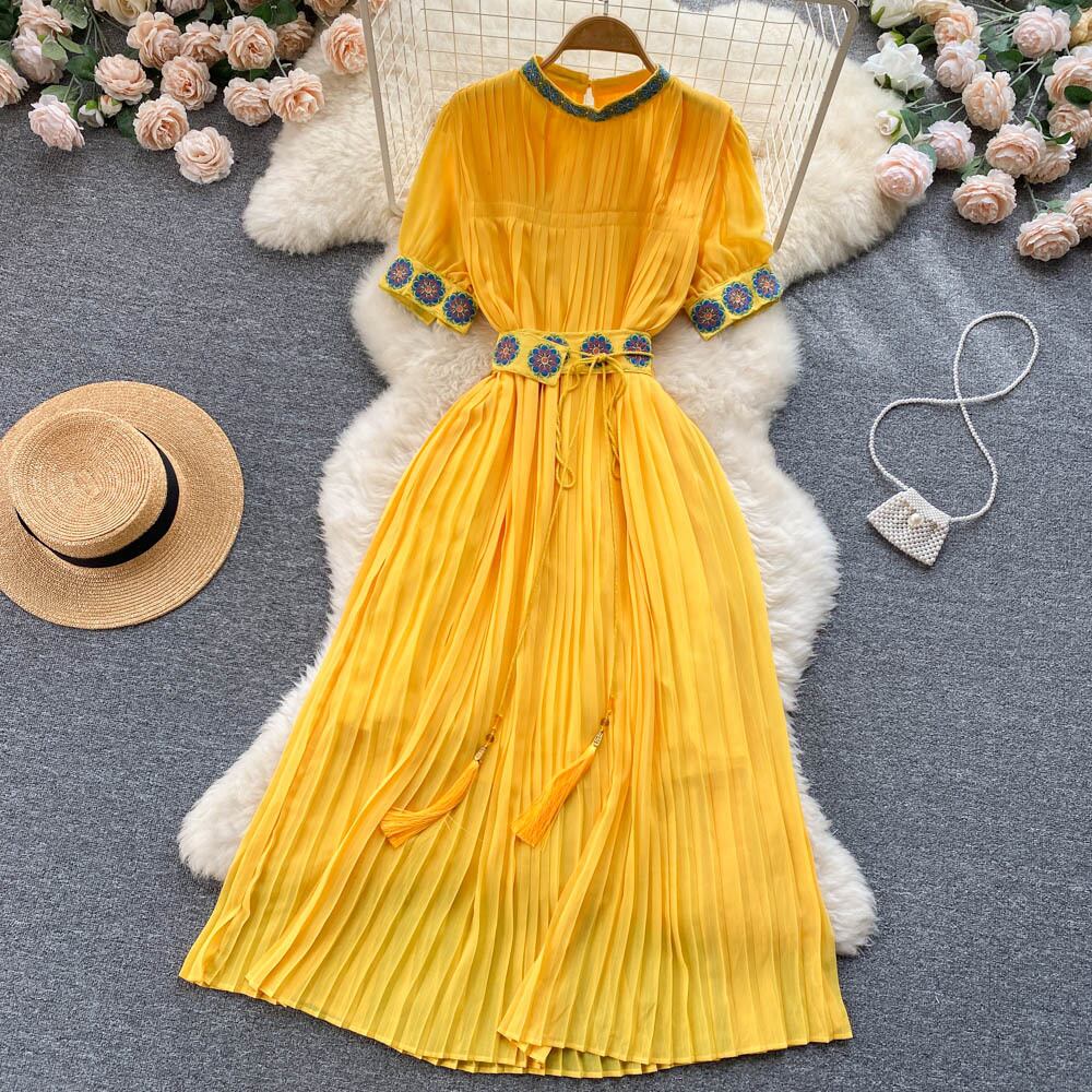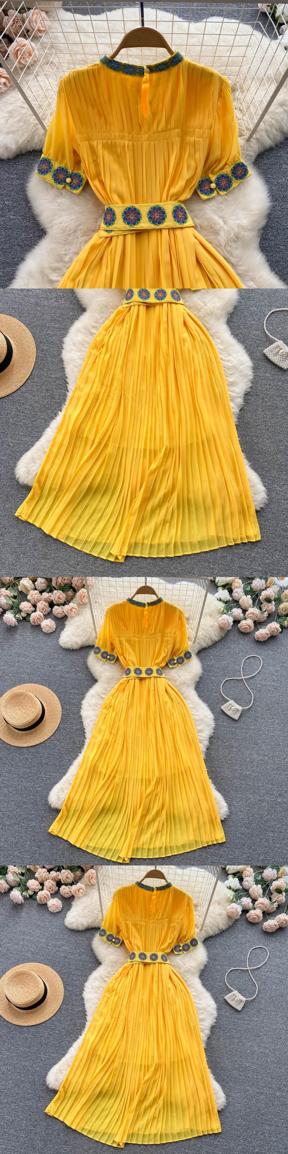 上品な寒風ウエスト 細身 シック キレイめワンピース 夏 レディース フレンチ刺繍 プリーツ ロングスカート サマー 夏物 lyxaj28591602375