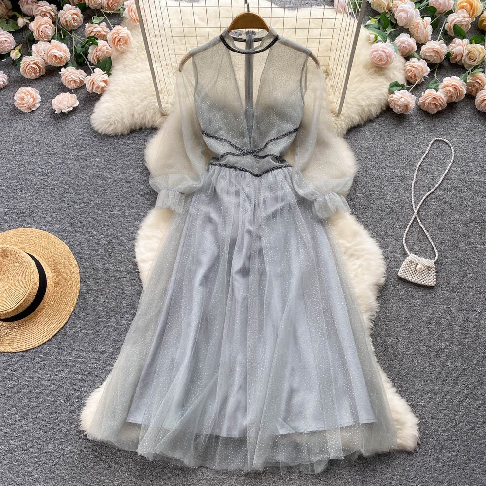 セレブ気質フェアリースカート薄手シースルーメッシュドレス女性ウエスト痩身ハイエンドライトラグジュアリー大振りロングスカート lyxaj77041928752