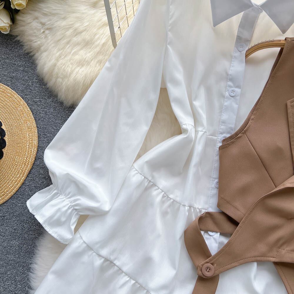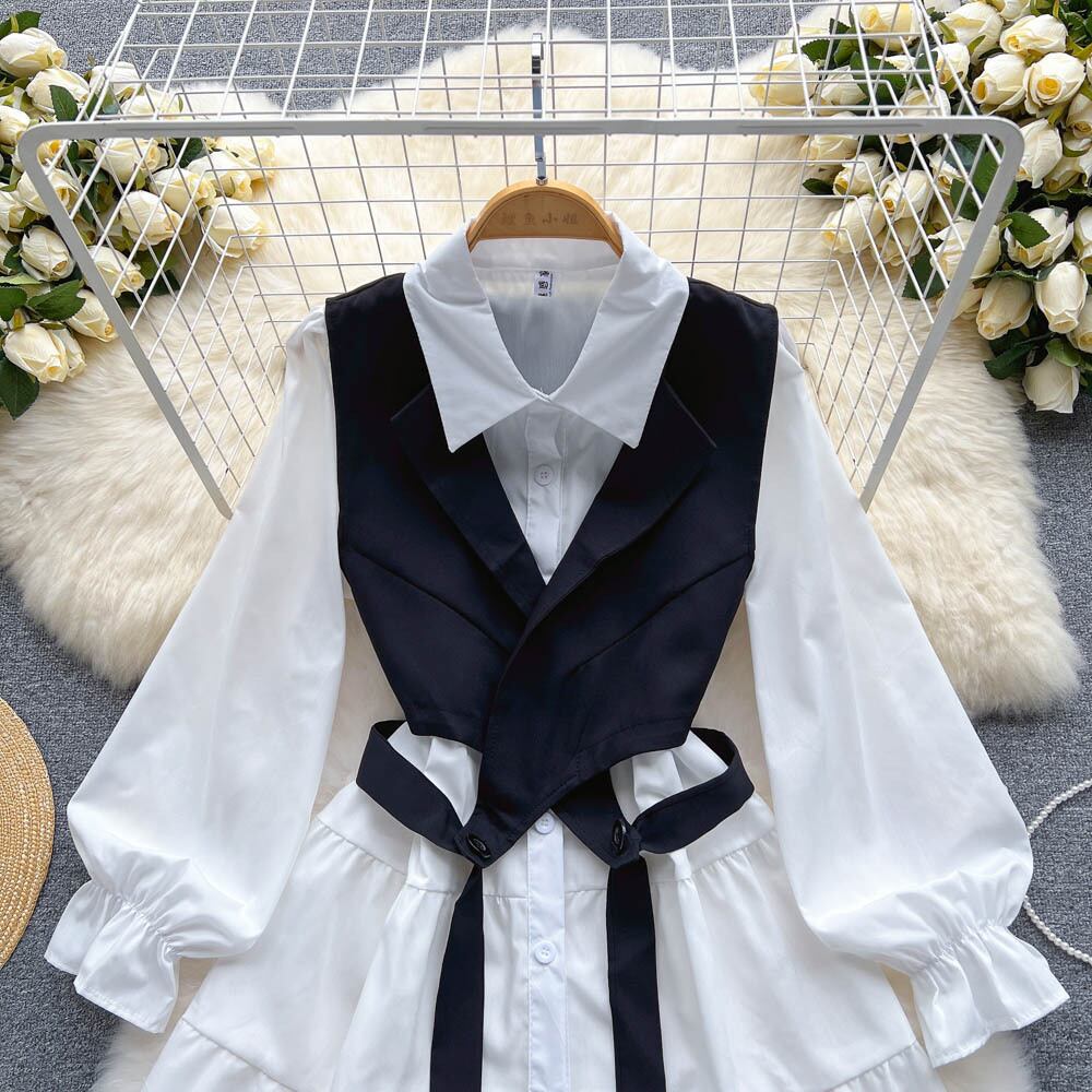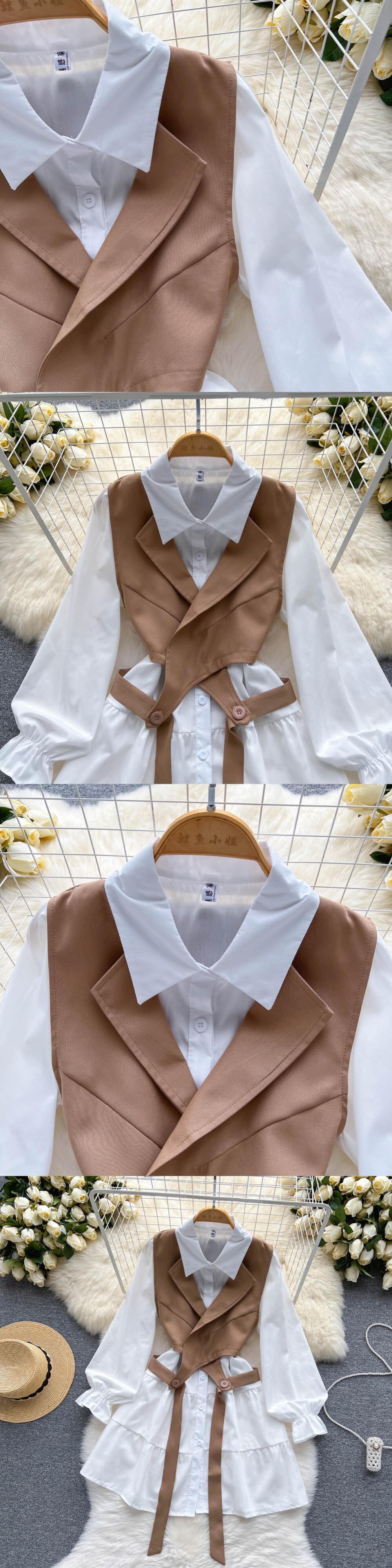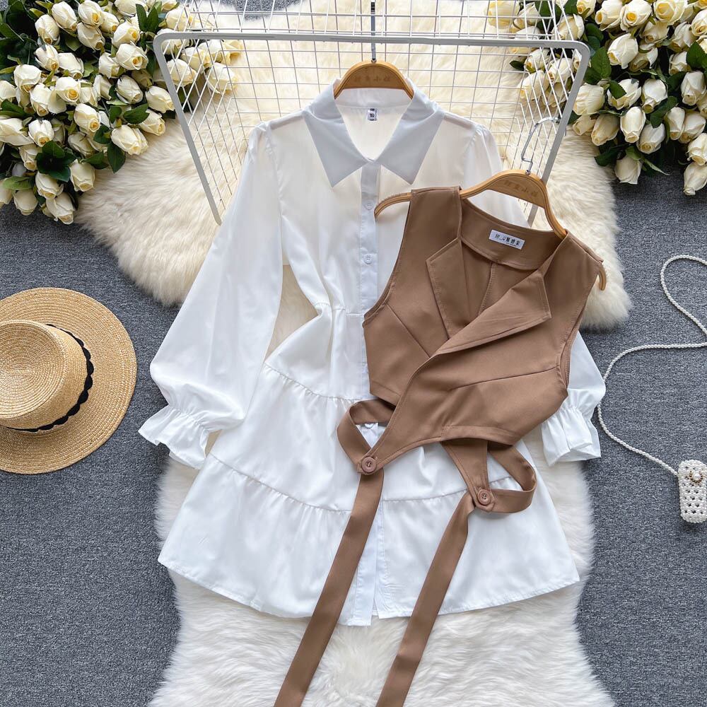 ファッション カジュアル スーツ女性の新しい韓国語バージョン ルーズ ホワイト シャツ ショート ベスト ウエスタン スタイル スリム ガール ツー ピース スーツ lyxaj45338307617