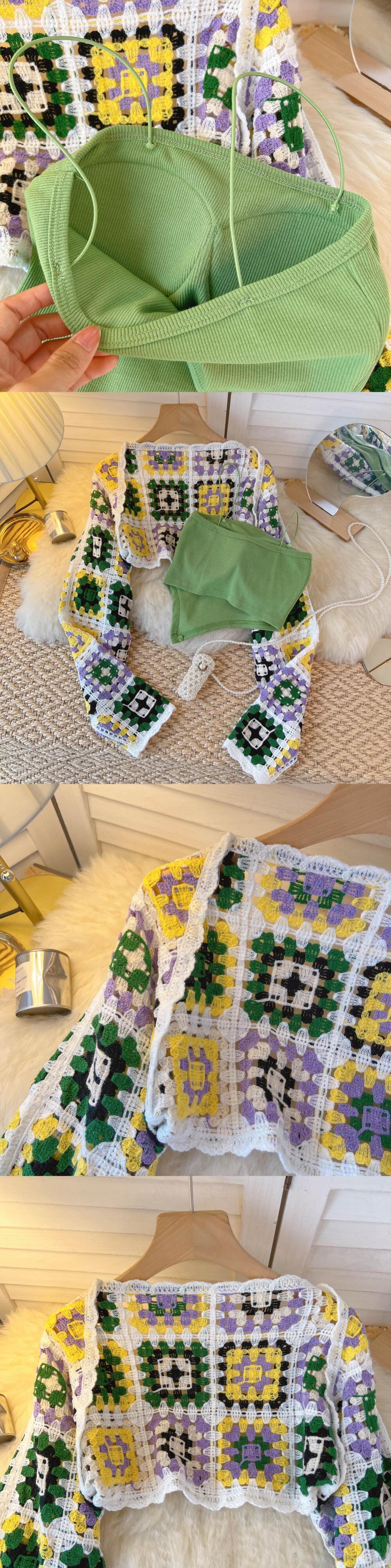 French short style contrast color plaid long-sleeved vest coat net red two-piece suit white irregular camisole women ショート ロング ホワイト レッド lyxaj30066054489